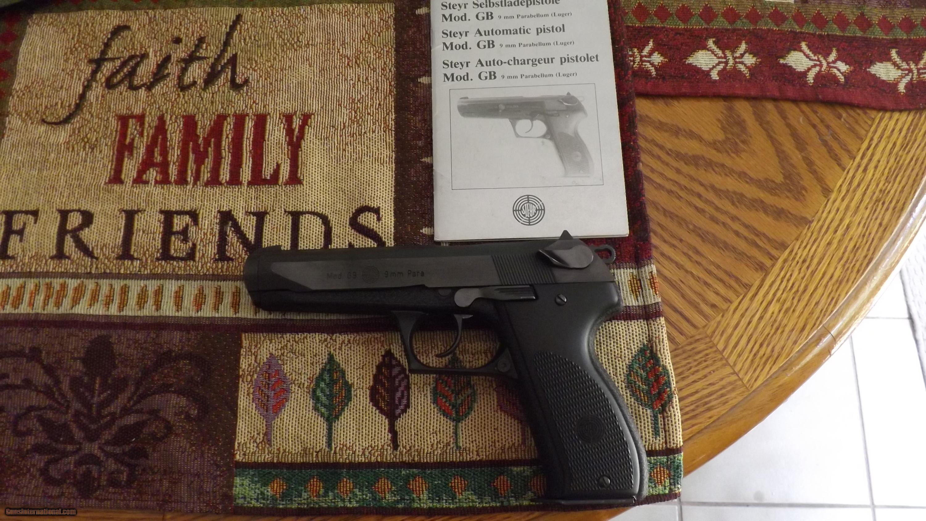 Description: VERY CLEAN STEYR GB PISTOL. Shipping $ 30.00 SALE PENDING SOLD Manufacturer: STEYR Model: GB Caliber Info: 9MM Condition: GREAT Metal Condition: GREAT |