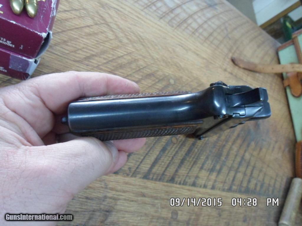Description: STEYR--HAHN MODEL 1911 AUTOMATIC 9MM STEYR CALIBER(WITH 1 STRIPPER CLIP AND 102 RDS.AMMO INCLUDED.5.1" BARREL WITH EXCELLENT BORE AND FIXED SIGHTS.8 ROUND FIXED MAGAZINE,TOP LOADED BY STRIPPER CLIP.,CHECKERED WOOD GRIPS.GREAT OVERALL CONDITION.SLIDE MARKED SETYR 1916,GUN LOOKS TO BE ALL MATCHING LETTERS. 595.00 PLUS 40.00 SHIPPING.M/O'S ONLY FOR PAYMENT.CALL DANNY AT 828=243=6269 IF NEEDED.GOD BLESS! SOLD Curio/Relic: Yes |