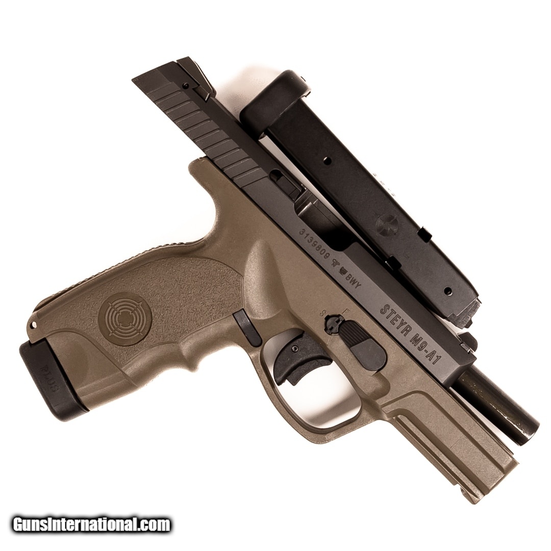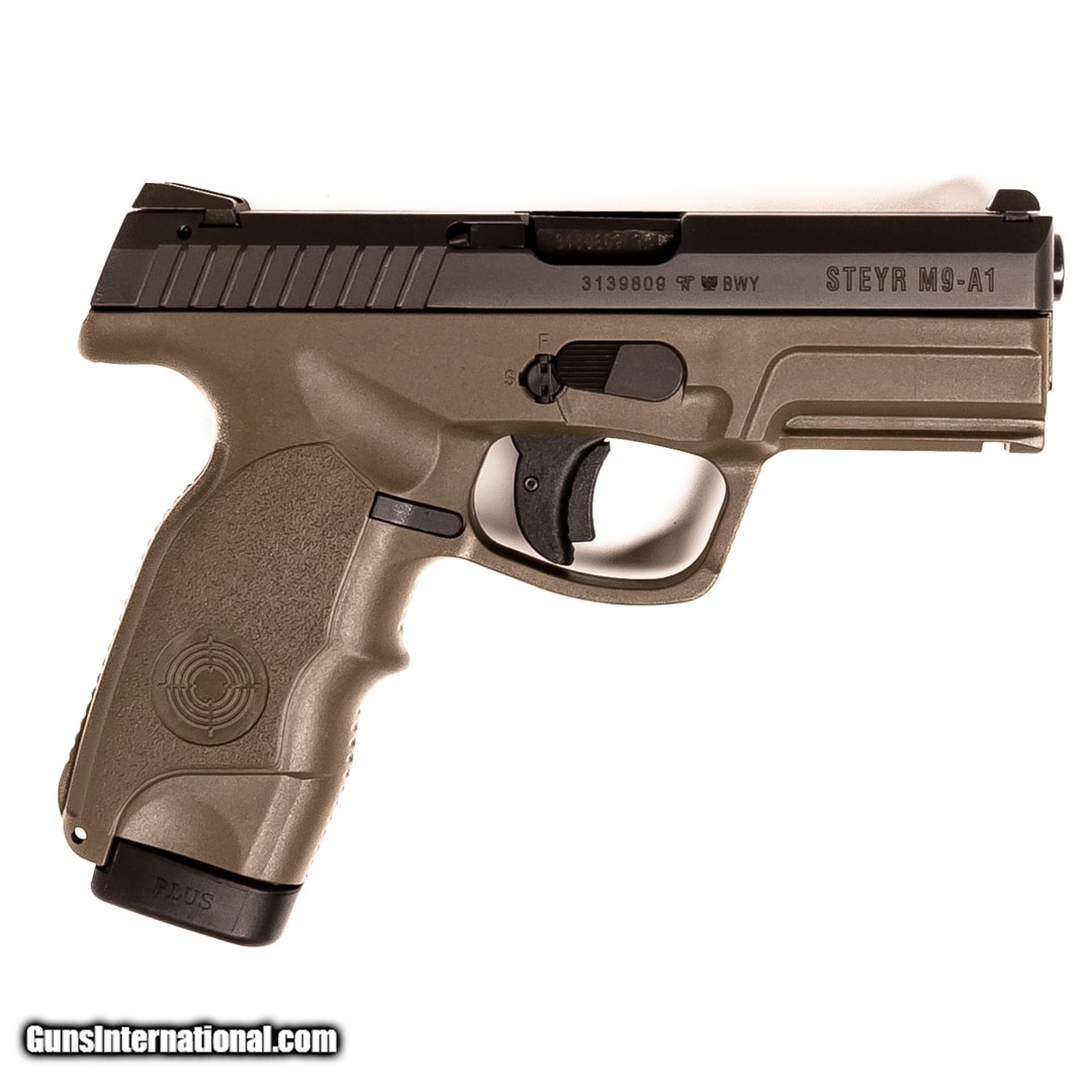 Description: Guns Listing ID: 654180 This Steyr M9-A1 is a semi-automatic pistol made with a polymer frame and a steel slide. Other features include a textured polymer grip with finger grooves and an integral accessory rail. This M9-A1 comes with the original case, manual, two 15-round magazines, and lock-out keys. Get the best bang for your buck when you get a Certified Used Firearm . When you see the Certified Used stamp on any of our firearms, you can be confident that you’re getting exactly what you want – a gun only in very good to excellent condition and held to the highest quality standard. All Certified Used Guns come with a ‘no questions asked’ return policy . PLUS, ALL CERTIFIED USED GUNS SHIP FREE! SOLD Manufacturer: STEYR Model: M9-A1 Caliber Info: 9MM LUGER (9X19 PARA) Condition: Used - Certified Barrels: 3.8 barrel Finish: BLACK & GREEN |