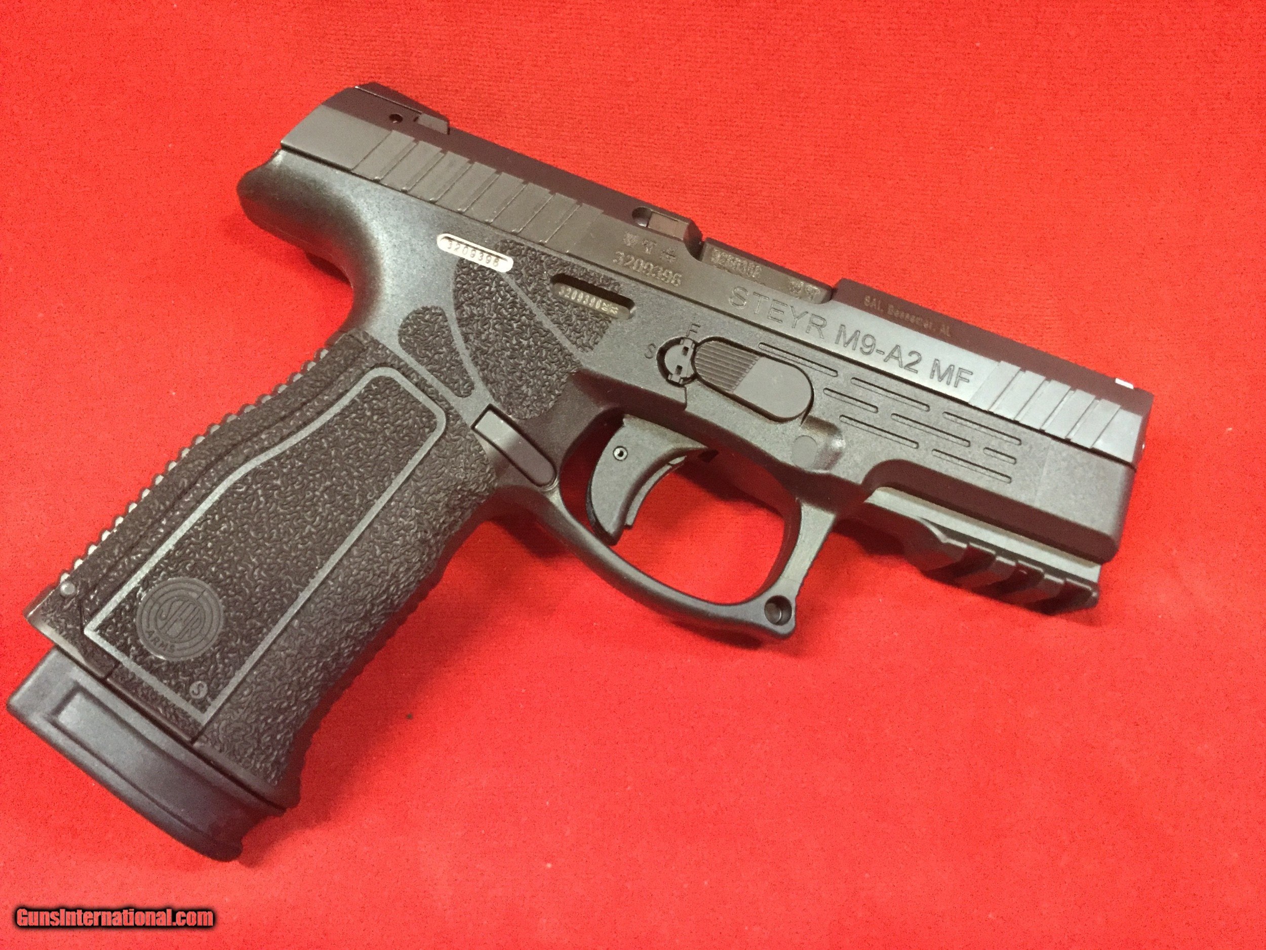 Description: ~~NEW~~ Steyr M9-A2 MF 9mm. $619.99 plus $40.00 shipped and insured. Add 3% for payments by card. To avoid CC fee we also accept postal money orders, personal and cashiers checks. The newly designed STEYR PISTOL A2 MF is the newest member in the STEYR ARMS product family. It is available in 3 sizes – (L-Large; M-Medium and C-Compact) with 17rnd magazine, a real picatinny rail (MilStd. 1913) at the forend and a fully adjustable grip. The back strap as well as both sides of the grip are adjustable with different sized inlays. The grip also features a funnel for a quick magazine change. SOLD |