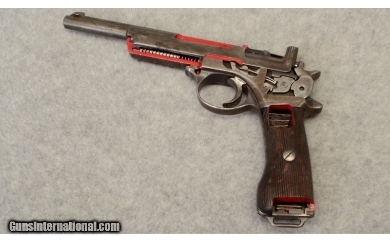 Description: This is a Steyr Mannlicher M1905 pistol that has been made into a cutaway model for training purposes. Barrel is 6 1/4" long. Metal is in very good condition with oxidization throughout due to age. No metal defects are present. The wood grips are in very good condition with small scuff marks and scratches. This pistol would make a fine display gun or training aid, or would be an interesting addition to any collection. 7.63x21 SOLD Curio/Relic: Yes Metal Condition: Metal is in very good condition with oxidization throughout. No rust is present. Wood Condition: Wood grips are in very good condition with small scuff marks and scratches. Bore Condition: Cutaway bore is in very good condition with strong rifling. Barrels: 6 1/4" barrel. Weight: 30 ounces Item Location: Tualatin, OR |