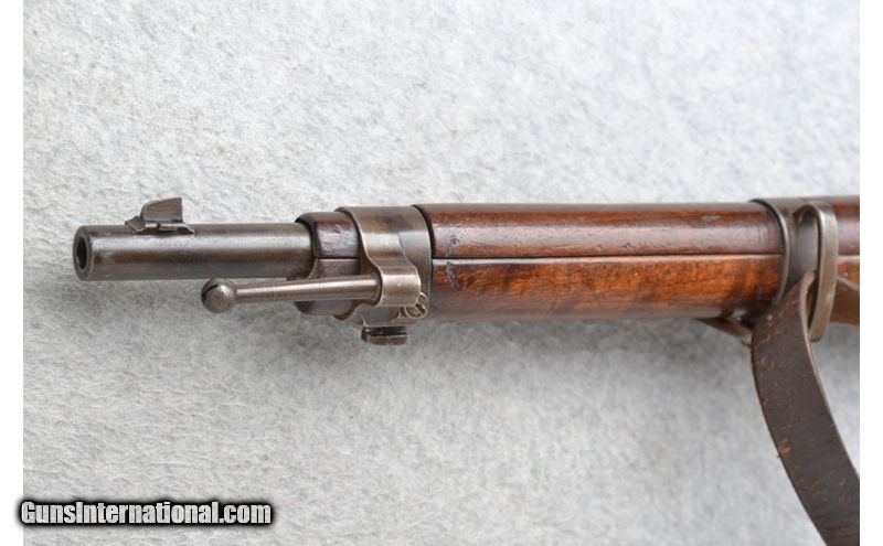 Description: This Steyr Mannlichter Model M95 Budapest is a right hand straight pull bolt action rifle in 8mm Cal. It has a 19.5 inch barrel. A blade front and adjustable notch rear sight. The stock is a smooth walnut semi-pistol grip butt and 2 piece foream with fing 8MM Mauser SOLD Curio/Relic: Yes Caliber Info: 8mm Chambers: Bolt Action 5 round en-bloc clip. Metal Condition: Very good with some surface wear. Wood Condition: Fair with multiple handling marks. Barrels: 19.5 inches. Stock Dimensions: LOP 13 1/8 inches. Fore End: Smooth grip 2 piece walnut with finger grooves and a barrel band. Butt Pad: Smooth steel. Sights: Raised blade front. Numbered sliding adjustable notch middle. Item Location: Richfield, WI |
