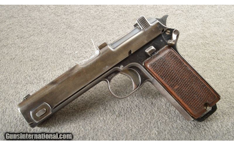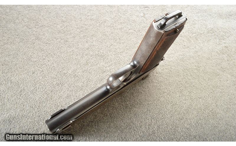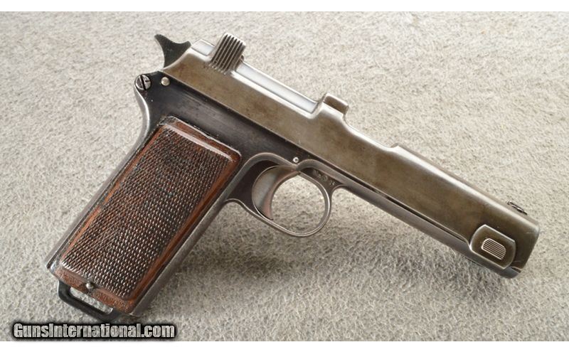 Description: The Steyr M1912, also known as the Steyr-Hahn, is a semi-automatic pistol developed in 1911 by the Austrian firm Steyr Mannlicher, based on the mechanism of the Roth–Steyr M1907. It was developed for the Austro-Hungarian Army and adopted in 1912. It was the standard Austro-Hungarian military handgun of World War 1. This is a nice service pistol with a matching frame and slide. 9mm Steyr SOLD Curio/Relic: Yes Chambers: Semi auto repeater. Metal Condition: "35% Scraps, scratches, pitting, finish wear. Wood Condition: Good with wear. Bore Condition: Very good. Barrels: 5" Barrel. Triggers: Single action. Weight: 2 lbs Sights: "Fixed front blade, notched rear. Item Location: Owatonna, MN |