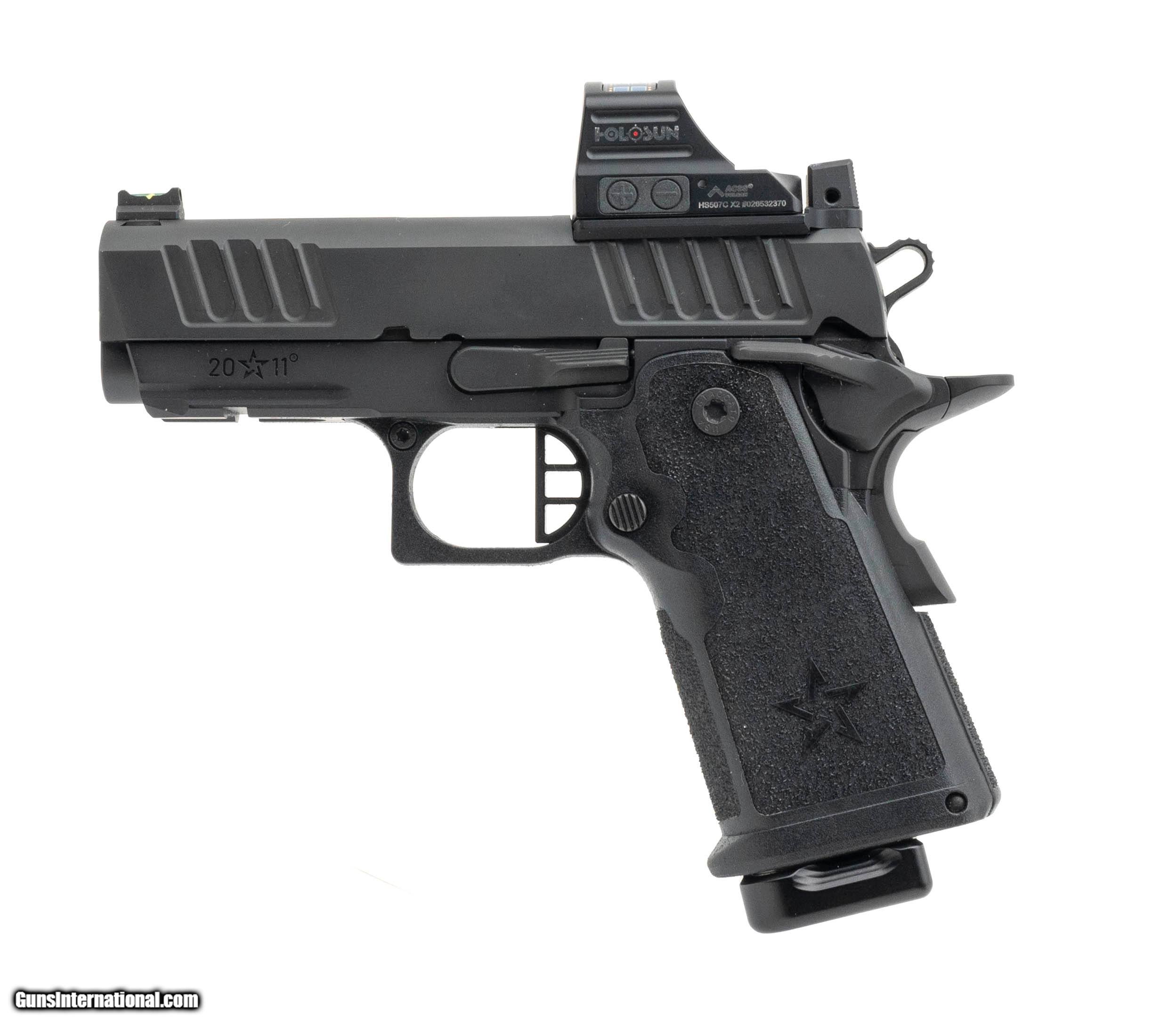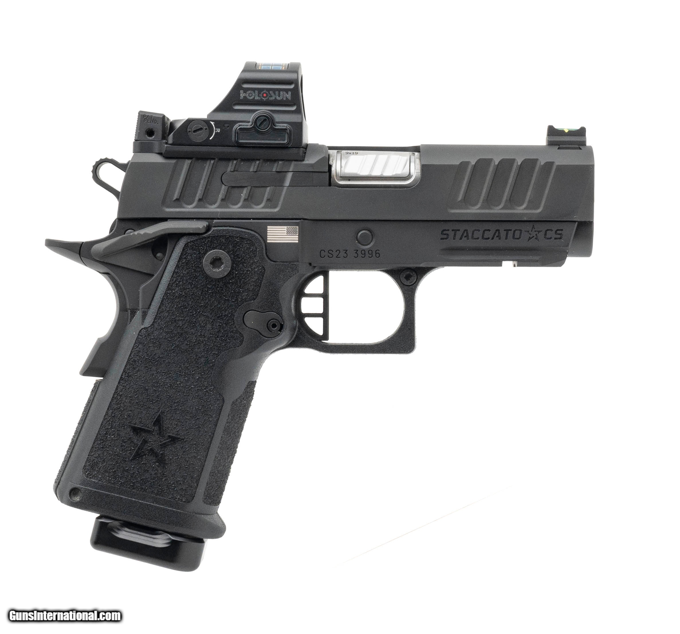 Description: "SN:CS244586. Modern production. 9mm with a 3.5"" bull barrel. Bore is in excellent condition. Compact aluminum alloy framed pistol. Finish and grips are in excellent condition. Pistol has Holosun red dot sight and flat trigger. Overall condition is excellent. Comes with bag and 1 extra magazine. SOLD |