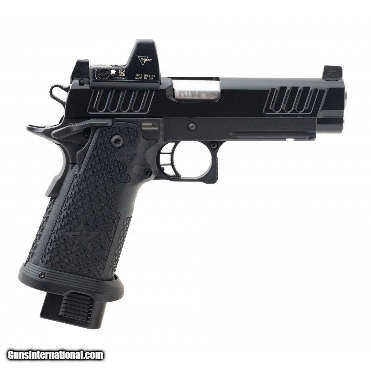 SN: TX17479. Modern production. 9x19 parabellum with a 4.25"" barrel, bore is excellent. Duty 2011 handgun with alloy frame, front-rear slide serrations, Trijicon suppressor ready night sights, ambidextrous safety and flared magwell. Overall very good condition. Comes with Trijicon RMR red dot and Staccato Range bag.