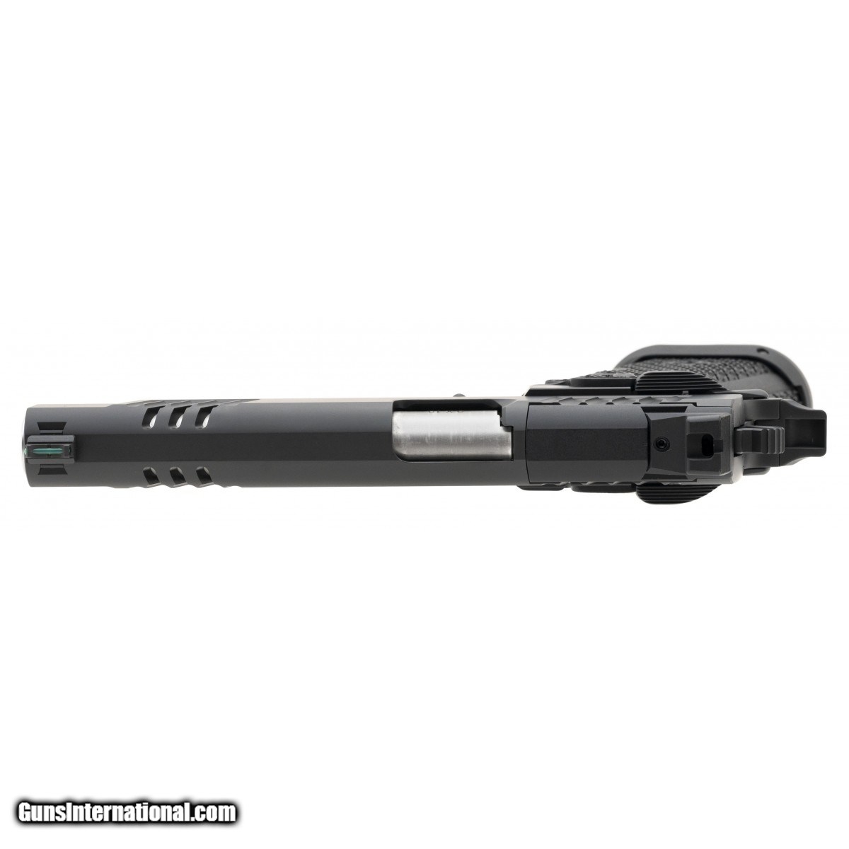 Description: " SN: TX34313. Premium optic-ready long slide competition pistol with 5.25"" bull barrel, green fiber optic front sight, ambidextrous safety and flared magwell. Overall excellent condition. Comes with a digital camo range bag and 2 extra magazines. SOLD |