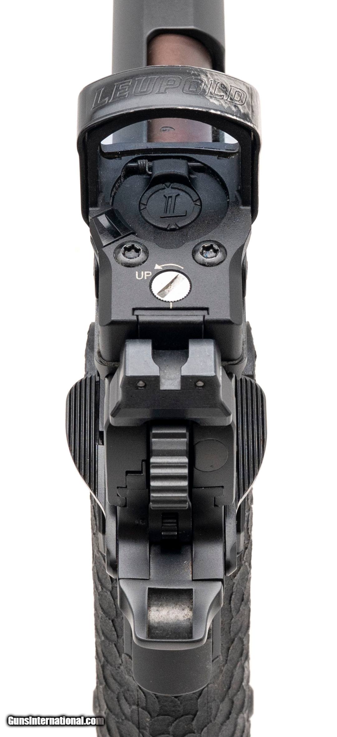 Description: "SN: TG33747. Modern production, 9mm with a 3.9"" Copper DLC coated bull barrel. Bore is bright with strong rifling. Carry size 2011 pistol with a Leupold Delta Pro red dot optic and night sights. Overall condition is near excellent. Comes with box, carry case, and an extra magazine. SOLD |