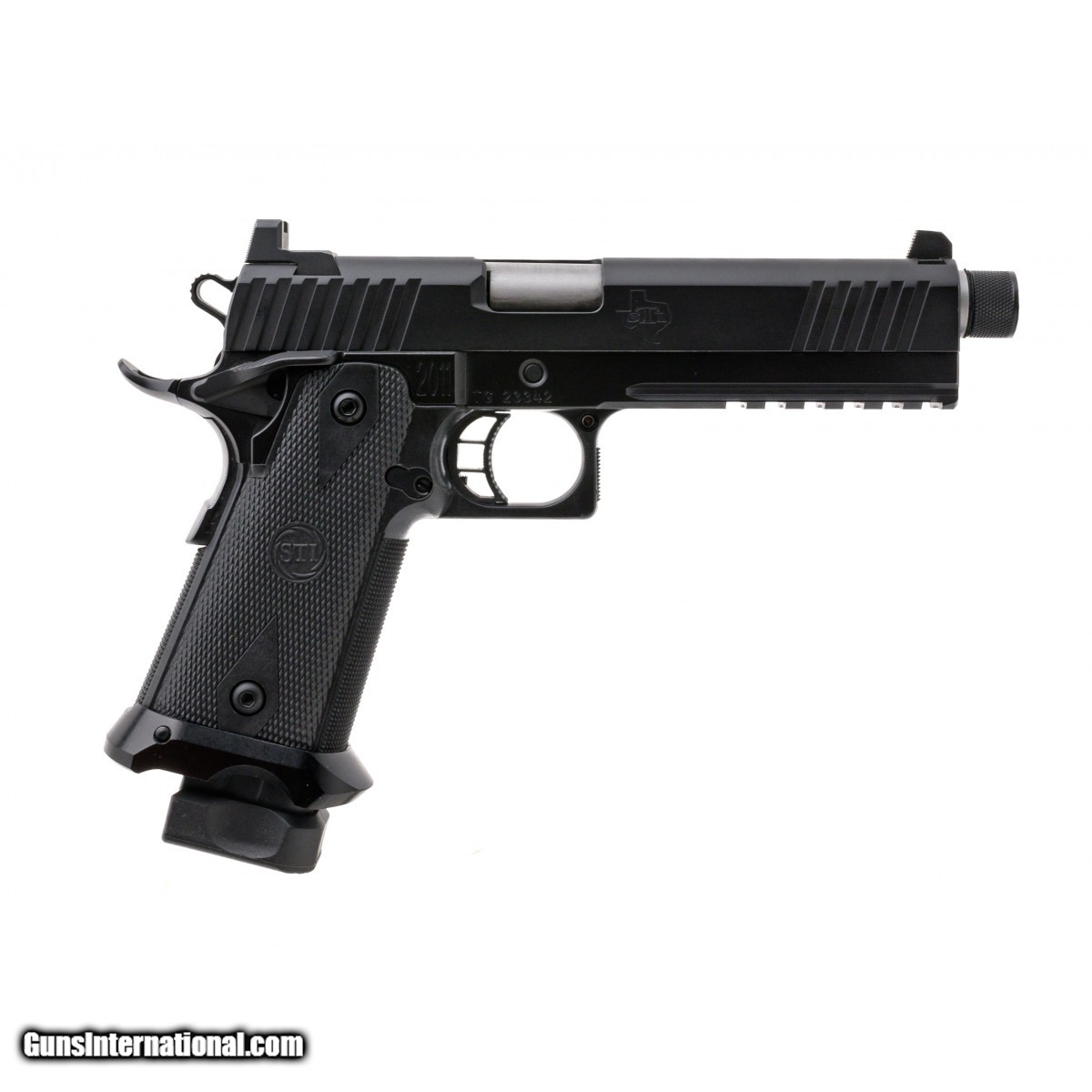 SN: TG23342. Modern production. .45 ACP with a 5.5"" threaded barrel. Bore is very good. STI .45 ACP steel frame 2011. Finish is in near excellent condition. Grips show minor handling wear with sharp checkering. Comes with case. Overall near excellent condition.