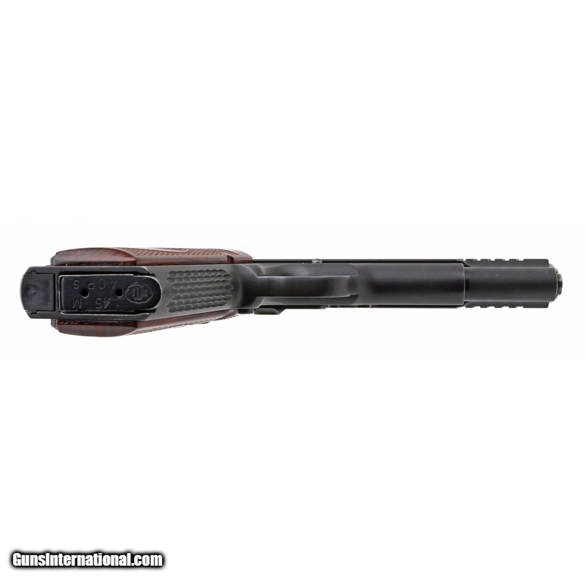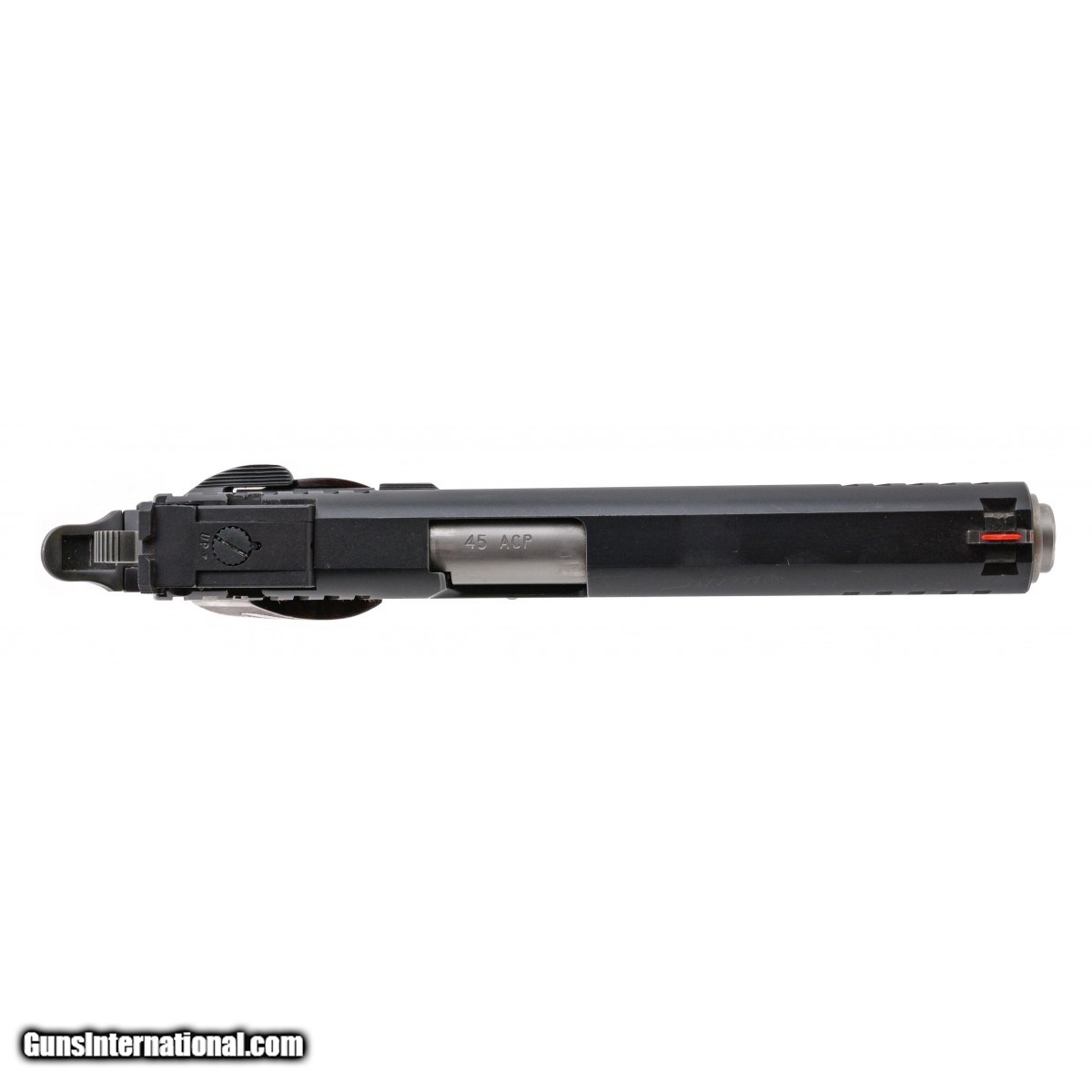 Description: "SN:NG18368. Modern production. .45ACP with a 5" barrel. Bore is in excellent condition. Full size 1911. Finish is in very good condition with handling wear noted on slide. Grips are in excellent condition. Pistol has Dawson adjustable rear sight. Overall condition is very good. SOLD |