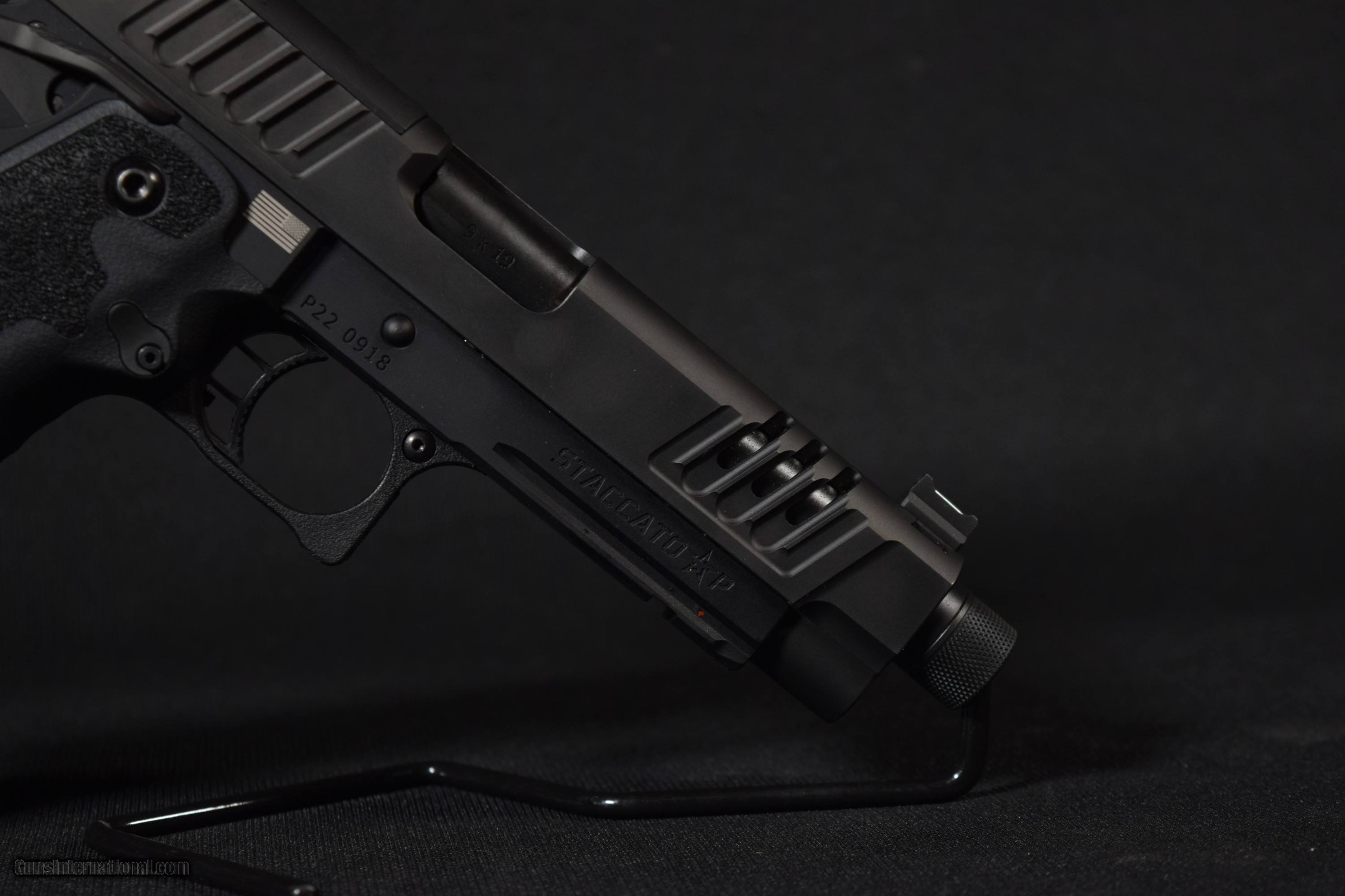 Description: The Staccato P is approved for duty by more than 667 law enforcement agencies and carried by elite units like the Texas Rangers and the US Marshals Special Operations Group, as well as thousands of officers across the country. The Staccato P continues to exceed standards in law enforcement department evaluations, including accuracy, reliability, and endurance testing. Civilians serious about protection and defense know that the Staccato P is the option trusted by those who put their lives on the line every day. This item comes with a soft case and 3 magazines. Overall condition is excellent with little to no wear present from use. Pre-Owned - STI International 2011 STACCATO P Single 9mm 4.4" Handgun