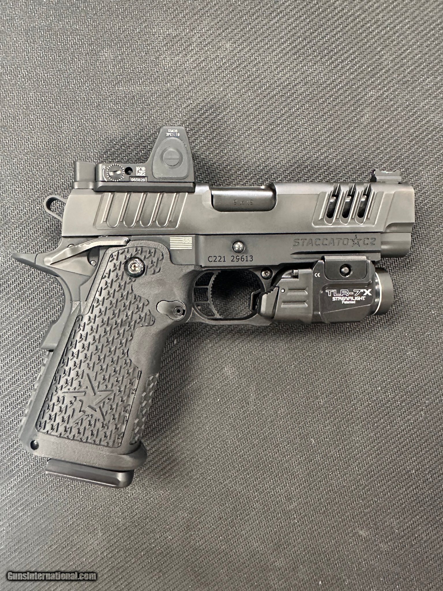 Description: Guns Listing ID: 522209 Firearm is brand new never sold. Comes with Trijicon RMR type2 (3.25MOA RED) / Streamlight TLR7x and Haley Strategic Incog X IWB (RH) holster. SOLD Manufacturer: STACCATO Model: 2011 C2 DLC OR Caliber Info: 9MM LUGER (9x19 PARA) Condition: Used - Non-Certified Barrels: 3.9 Action: SEMI AUTOMATIC Finish: black matte |