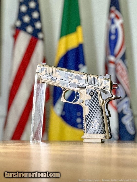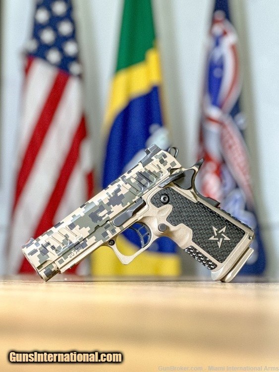 Description: Guns Listing ID: 992809 This is a factory NEW, Never-Fired Gun. Staccato 2011 the wrold‚‚s best shooting gun. SKU: 10-0101-000102 UPC: 816781016747 Pistol, Staccato, C2, Semi-Auto, 9mm, 3.9\" Barrel, 3 Magazines of 16 Rounds - Custom MARPAT by A Really Bad Design Each Magazine base pad has one of the three colors in this MARPAT to give this gun an extra touch. Our sister company, A Really Bad Design, is Certified by Cerakote(tm). In honor of our beloved Corps we created this Green MARPAT digital camo using one of our partner‚‚s original 2004 USMC \"diggies\" cammies. If you are a Marine or you have a US Marine in your circle of friends / Family this will make the perfect gift! If you would like we can do this work on YOUR GUN!! That is right, if you already own a gun that you love and would like this work done on it we can arrange to have it done! SOLD Manufacturer: STACCATO Model: 2011 C2 MARPAT Camo Digital Caliber Info: 9MM LUGER (9X19 PARA) Condition: Used - Non-Certified Barrels: 3.9 BARREL Finish: CAMO |