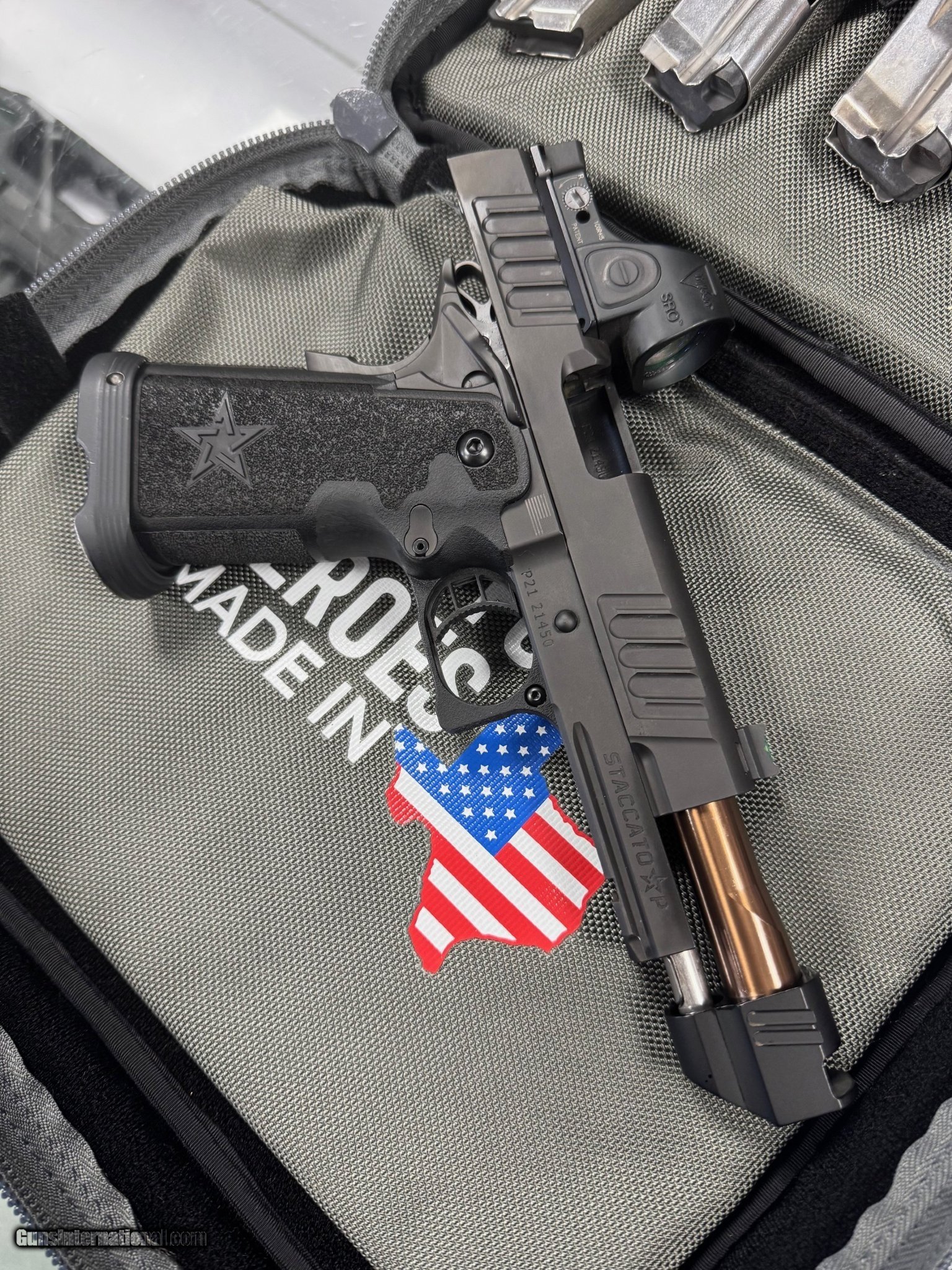 Description: Guns Listing ID: 540973 Stacatto P DPO Stacatto P DPO Excellent condition 9mm, very low round count Includes Trijicon SRO 2.5moa Red Dot Jarvis threaded barrel DP comp DP fiber optic front site DP optics plate Extra DP screw kit Ed Brown perfection sear Atlas flat trigger (not installed) barrel bushing wrench 4 17 round mags 1 20 round mag bag and factory paperwork. Comes as seen SOLD Manufacturer: STACCATO Model: 2011 P DPO Caliber Info: 9MM LUGER (9x19 PARA) Condition: Used - Non-Certified Barrels: 4.4 BARREL Action: SEMI AUTOMATIC Finish: ALUMINUM AND BLACK |