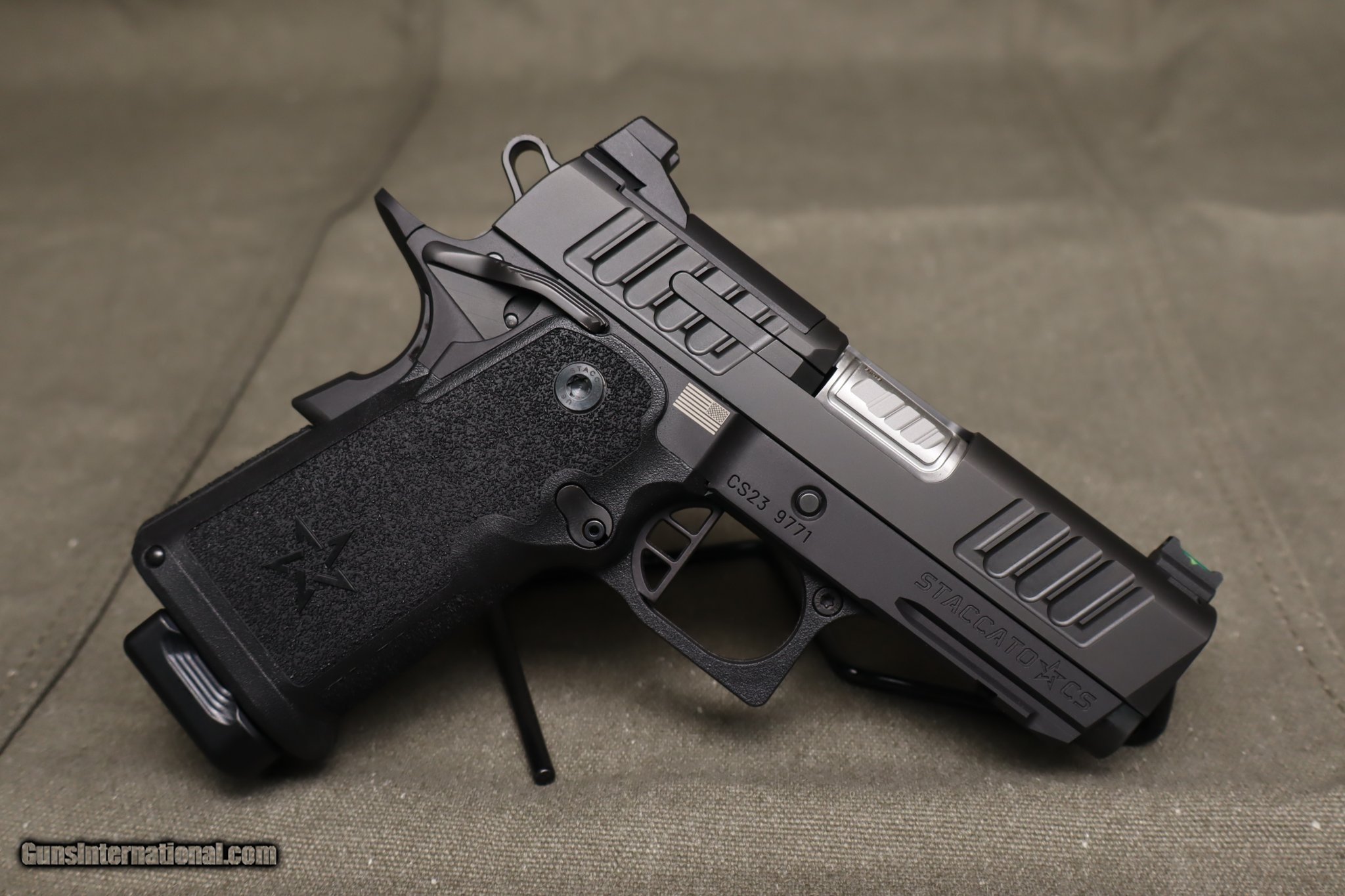 Description: Guns Listing ID: 1267657 Delivering pure Staccato shootability, speed, and accuracy, the Staccato CS helps you shoot better wherever your path takes you. The Staccato CS is the smallest, lightest, and most concealable addition to the Staccato pistol family, and debuts a new grip designed for a range of hand sizes. Loaded with significant patent-pending technology, the Staccato CS embodies American ingenuity in a practical, small package that has to be experienced to believe. As the newest member of our pistol family, the Staccato CS delivers pure Staccato shootability, speed, and accuracy. With patent-pending technology packed inside, the Staccato CS helps you shoot better wherever your path takes you. Weighing under 23 ounces, this “little sibling” is smaller than other members of the Staccato pistol family and made for concealed carry. The Staccato CS debuts a new grip that’s narrower than other Staccatos, along with a new grip texture and a dedicated magazine. Now it’s possible to have Staccato with you at all times. Included: Carry Bag & Two (16 Round) Magazines. SOLD Manufacturer: STACCATO Model: 2011 STACCATO CS 3.5" STAINLESS STEEL BULL BARREL OPTIC READY FLAT V3 TRIGGER FULL SIZE SIGHTS Caliber Info: 9MM LUGER (9X19 PARA) Condition: Used - Non-Certified Barrels: 3.5 BARREL Finish: DLC |