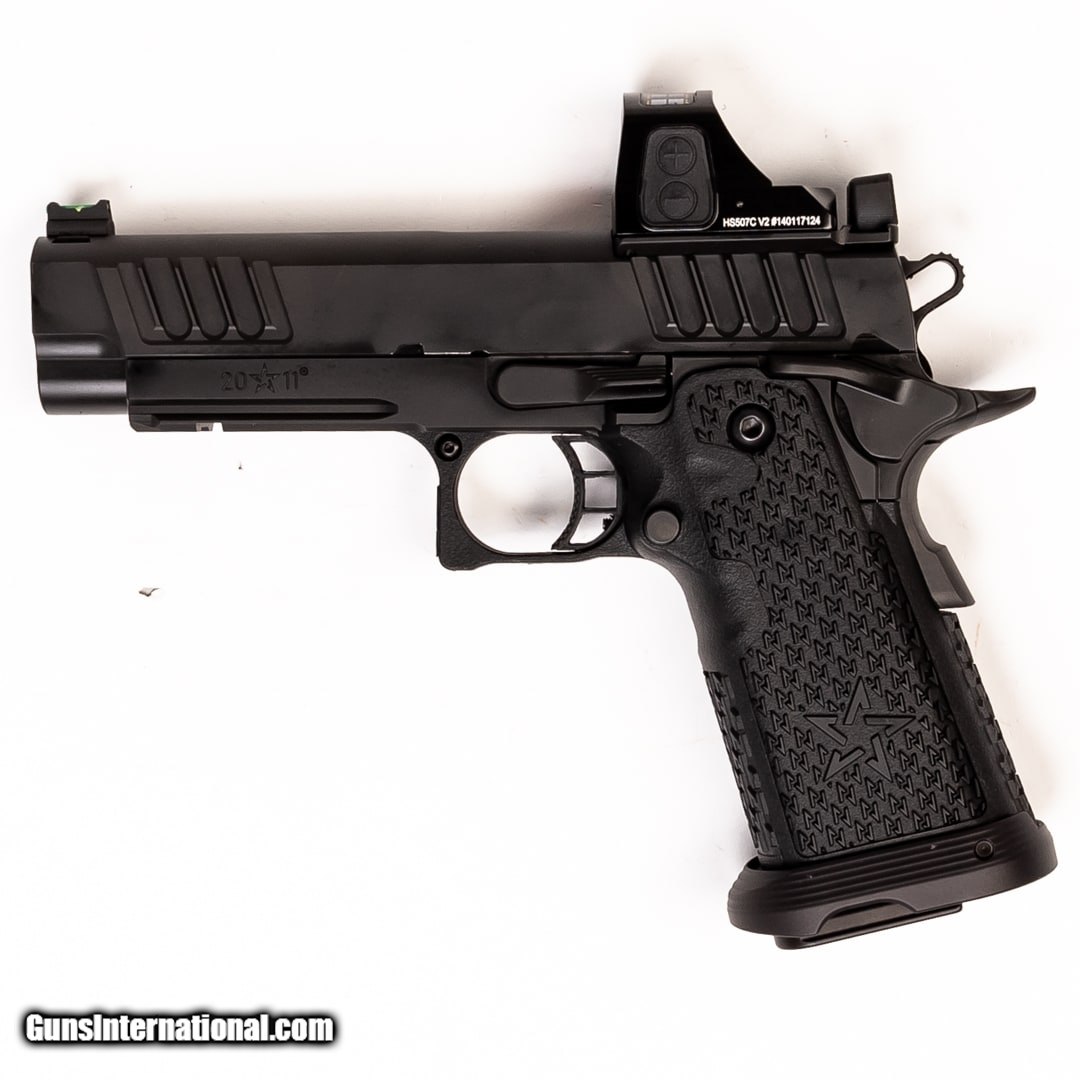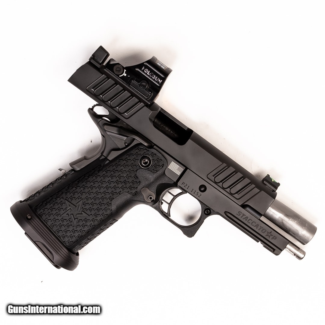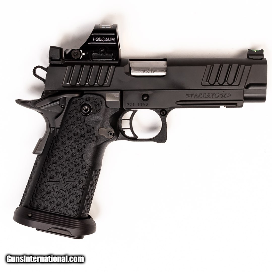 Description: Guns Listing ID: 488599 The 2011 Staccato-P is a high quality handgun patterned off the venerable 1911. If you love the ergonomics and controls of John Browning‚‚s most iconic pistol than this this will make a phenomenal personal protection sidearm. This handgun features a Holosun optic, a Dawson Precision mounting plate, one 17-round magazine, and the original case with the manual SOLD Manufacturer: STACCATO Model: 2011 STACCATO-P Caliber Info: 9MM LUGER Condition: Used - Certified Barrels: 4.5 BARREL Finish: BLACK |
