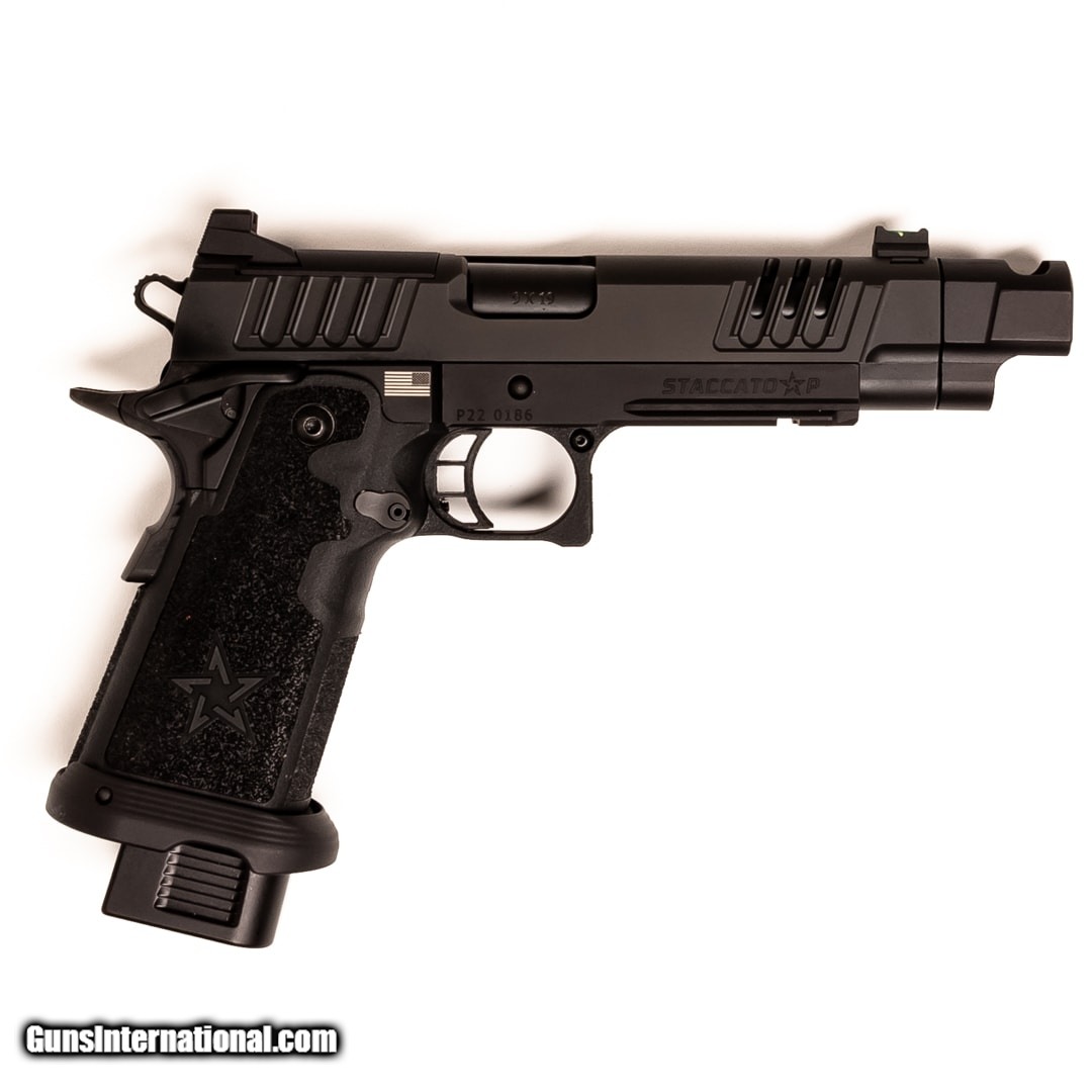 Description: Guns Listing ID: 641278 For sale is a Staccato P 2011, a semi-automatic handgun chambered in 9mm with a double-stack design. It is a variation on the top-selling, single-stack 2011 Staccato C and a significant evolution of the classic Browning 1911. This 2011 is a limited edition model and one of only 500 made. It has an aluminum frame, X Series serrations, G2 tactical texture grip, Dawson Precision fiber optic front sight, T.A.S II rear sight, Dawson Precision Ice comp, an X series trigger (3lbs), and a Delta Point Pro mounting kit. All of the original parts are included, along with eight 20-round factory magazines. Get the best bang for your buck when you get a Certified Used Firearm . When you see the Certified Used stamp on any of our firearms, you can be confident that you’re getting exactly what you want – a gun only in very good to excellent condition and held to the highest quality standard. All Certified Used Guns come with a ‘no questions asked’ return policy . PLUS, ALL CERTIFIED USED GUNS SHIP FREE! SOLD Manufacturer: STACCATO Model: 2011 STACCATO P Caliber Info: 9MM LUGER (9X19 PARA) Condition: Used - Certified Barrels: 4.5 barrel Finish: BLACK |