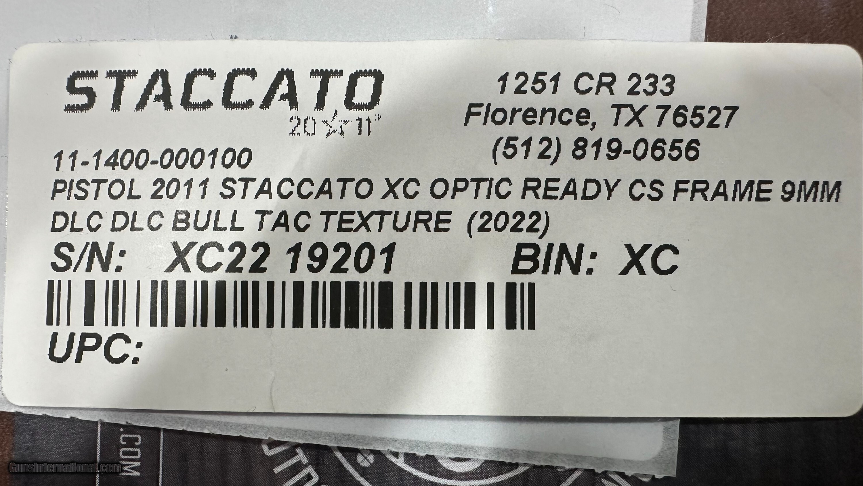 Staccato 2011 XC 9mm Optic Ready CS Frame DLC 5'' Compensated