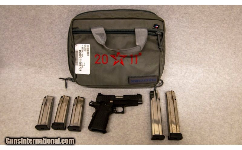 Description: Staccato C2, chambered in 9 mm. Features include: lightweight alloy frame, 3.9 in. stainless bull barrel, 16 shot mag., Dawson Precision Perfect Impact front fiber optic sight, Optic plate system with full-size rear sight, 2011 G2 black grips, ambi safety levers, Recoil Master Light system, accessory rail, black DLC finish. Some of the magazines have oxidation starting to show on them and will require some light cleaning. 9mm Luger SOLD Chambers: 9 mm Metal Condition: Excellent Bore Condition: Excellent Barrels: 3.9' Sights: 3 Dot Fiber Optic Front Item Location: Fort Mill, SC |