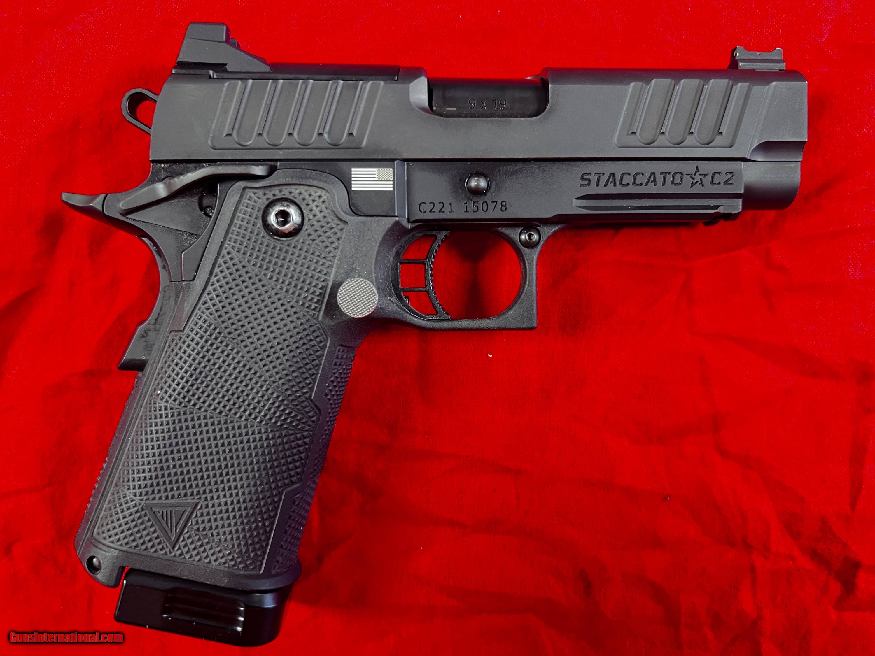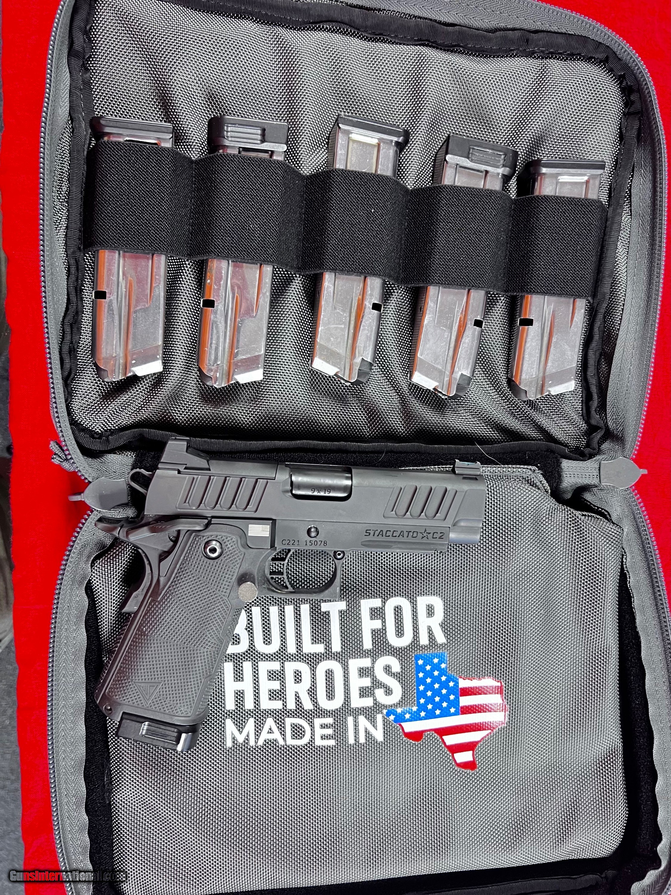 Description: Very nice Staccato C2 in factory bag with 6 mags, set up as left handed mag release SOLD |