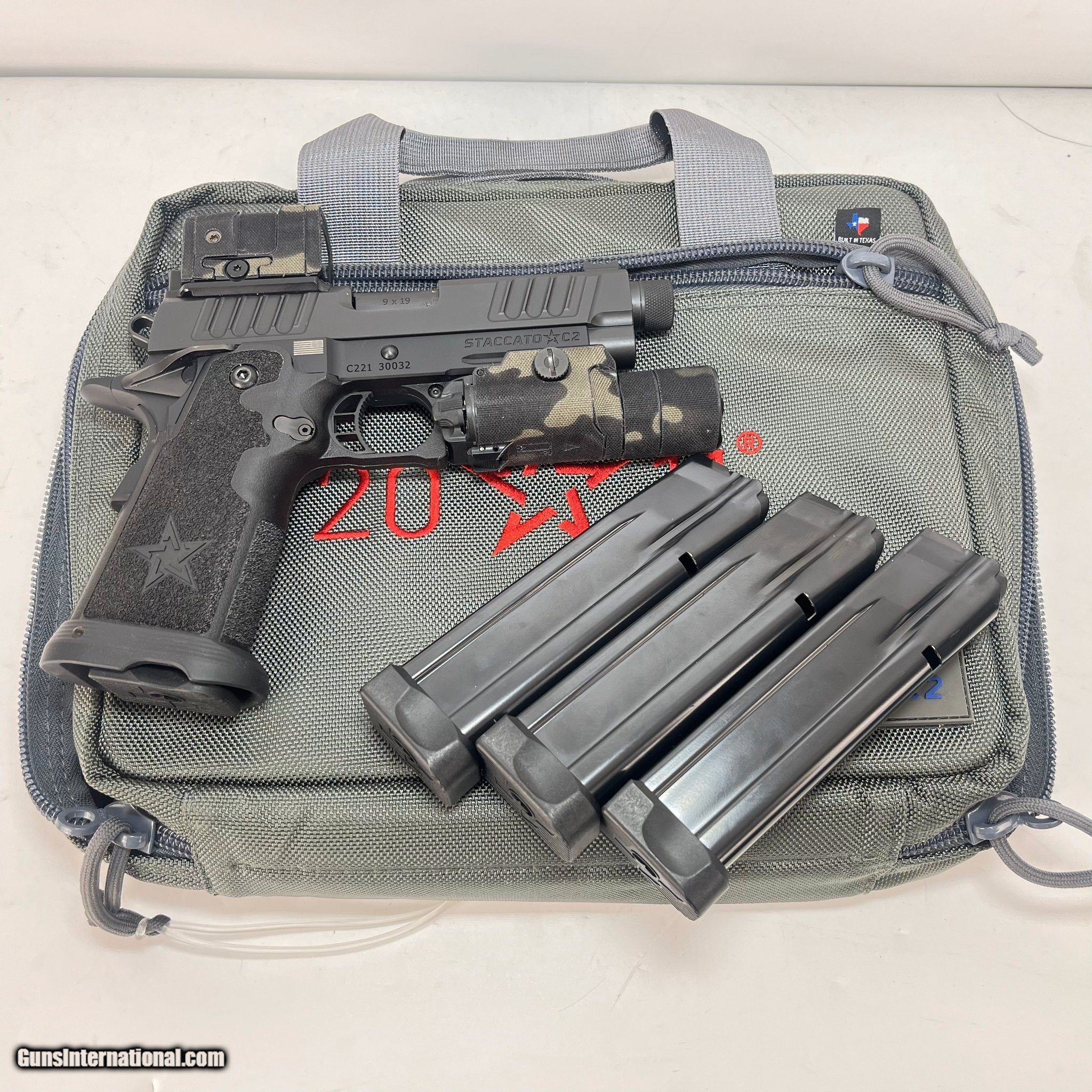 Description: Guns Listing ID: 605030 This used Staccato C2 Full Size Grip 9mm Pistol is in excellent condition and represents a premium, fully outfitted 2011 platform built for serious performance and reliability. Featuring Staccato’s full-size Tac Texture grip, this pistol delivers exceptional control, enhanced recoil management, and a secure, aggressive grip surface ideal for duty use, home defense, or advanced training. Chambered in 9mm, this C2 comes with an impressive magazine package that includes one 17-round magazine and three 20-round magazines, providing outstanding capacity and flexibility for range or defensive applications. The pistol is equipped with a threaded DLC-finished barrel, offering increased durability, reduced friction, and compatibility with suppressors or muzzle devices where legally permitted. Mounted on the slide is a rugged Aimpoint ACRO P-2 red dot sight, widely regarded for its enclosed design, exceptional durability, and clear aiming window. The optic is perfectly complemented by co-witness fiber optic sights, ensuring fast target acquisition and reliable backup aiming. A Streamlight X300 weapon light is also included, delivering powerful illumination for low-light environments. Additional enhancements include a flared magwell for faster, more consistent reloads and improved ergonomics. Despite its pre-owned status, this pistol shows minimal signs of use and remains mechanically outstanding. The package is rounded out with the original Staccato Range Bag, making transport and storage convenient and secure. Overall, this Staccato C2 Full Size Grip is a turnkey, high-performance 9mm pistol that combines elite components, high capacity, and proven Staccato craftsmanship—an exceptional choice for shooters seeking a no-compromise defensive or duty-ready handgun. Manufacturer: STACCATO Model: C2 Full Size Grip Caliber Info: 9MM LUGER (9x19 PARA) Condition: Used - Non-Certified Barrels: 4.4" BARREL Action: SEMI AUTOMATIC Finish: black dlc Price: $3,499.99 Contact Seller |