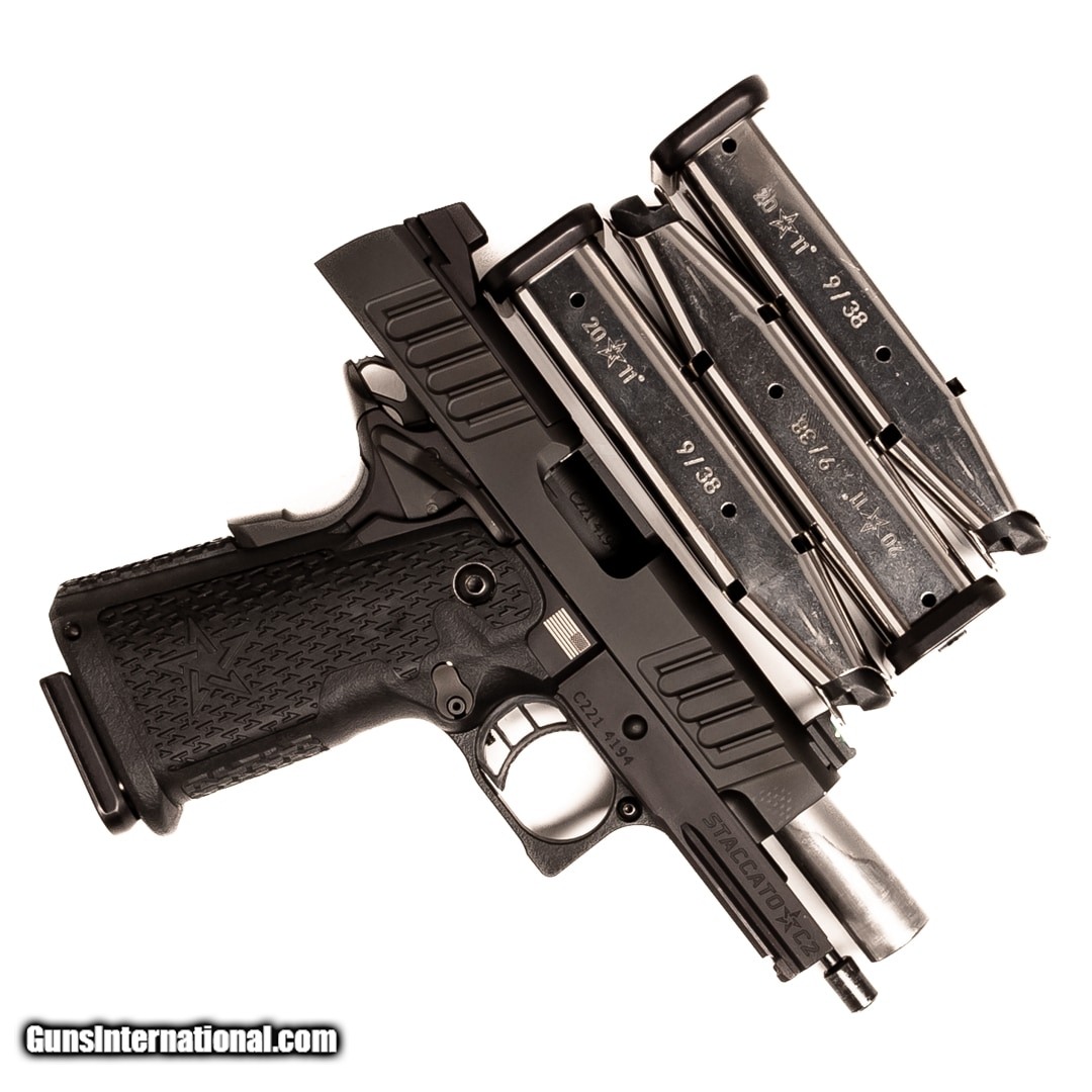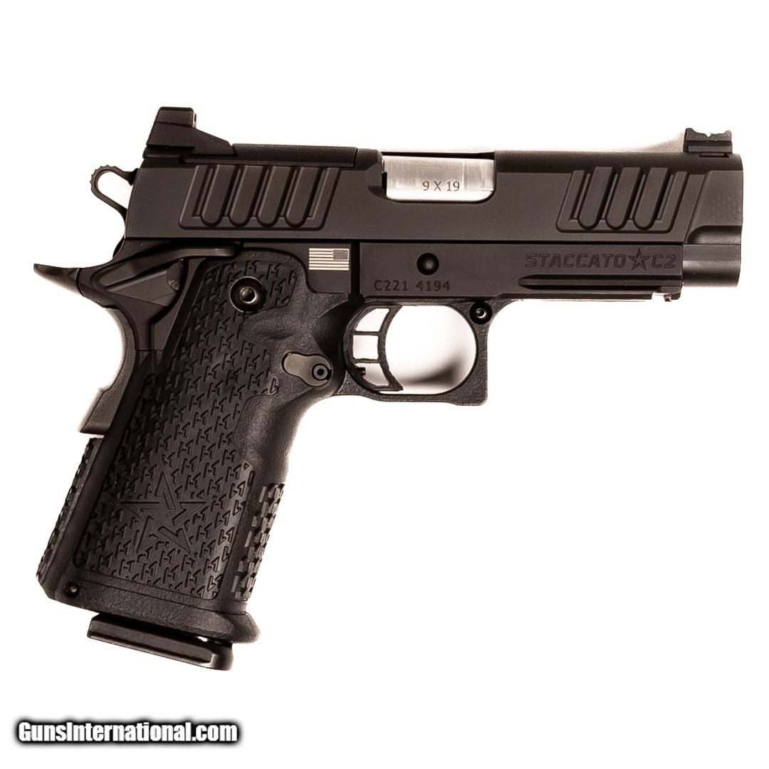 Description: Guns Listing ID: 827960 Push standards with unprecedented accuracy. With double the capacity of the C, the Staccato 2011 C2 has quickly redefined what‚‚s possible with a compact carry gun. From the retired special forces veteran shooting consistent 100-yard shots in sub 4 seconds to the everyday range shooter hitting 25-yard-targets with ease, the 2011 C2 provides accuracy never experienced in a compact carry gun. As durable and reliable as the Staccato P, the 2011 C2 has become popular among law enforcement. And it‚‚s also an excellent choice for both everyday carry and home defense. This model features a safety. Purchase includes the original soft carry bag, owner‚‚s manual, three 16-round magazines, and one 17-round magazine. Get the best bang for your buck when you get a Certified Used Firearm . When you see the Certified Used stamp on any of our firearms, you can be confident that you’re getting exactly what you want – a gun only in very good to excellent condition and held to the highest quality standard. All Certified Used Guns come with a ‘no questions asked’ return policy . PLUS, ALL CERTIFIED USED GUNS SHIP FR SOLD Manufacturer: STACCATO Model: C2 Caliber Info: 9MM LUGER (9X19 PARA) Condition: Used - Certified Barrels: 3.9 BARREL Finish: BLACK |
