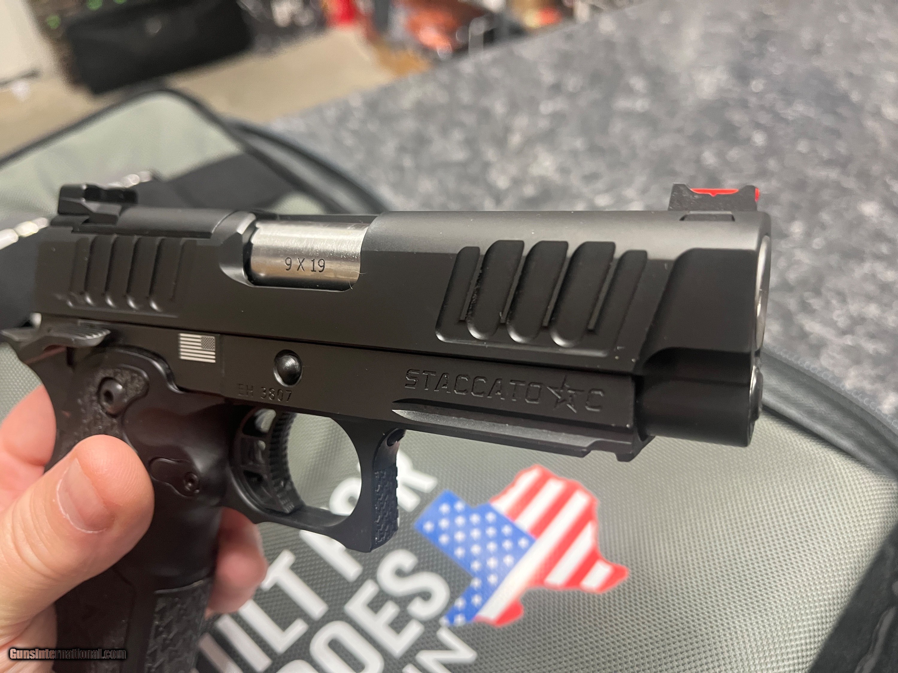 Description: Extremely nice condition 9mm Staccato model C optic ready pistol. Discontinued model. Includes case, paperwork, and 3 mags. Call 615-585-9988 with any questions. SOLD Handgun Caliber: 9x19mm Parabellum (9mm Luger, 9x19mm NATO) Manufacturer: Staccato Model: C Condition: Excellent Metal Condition: Excellent |