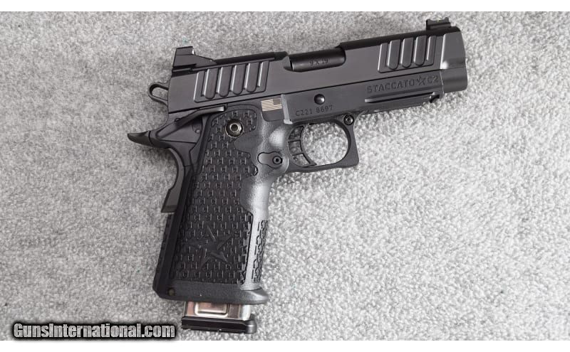 Description: This Staccato C2 Model remains in excellent overall condition showing only light use. Gun has some light holster/carry wear on frame and right side of rear sight. Complete with black nylon Staccato carry case and six (6 Total) 17 round magazines. Very nice gun! 9mm Luger SOLD Metal Condition: Very Good Bore Condition: Excellent Barrels: 3 3/4 Triggers: Factory Butt Pad: Textured Black Polymer Grips with Staccato Logo Weight: 30 ozs Sights: Green Fiber Optic Front - Fixed High Square Notch Rear Item Location: Wheeling |