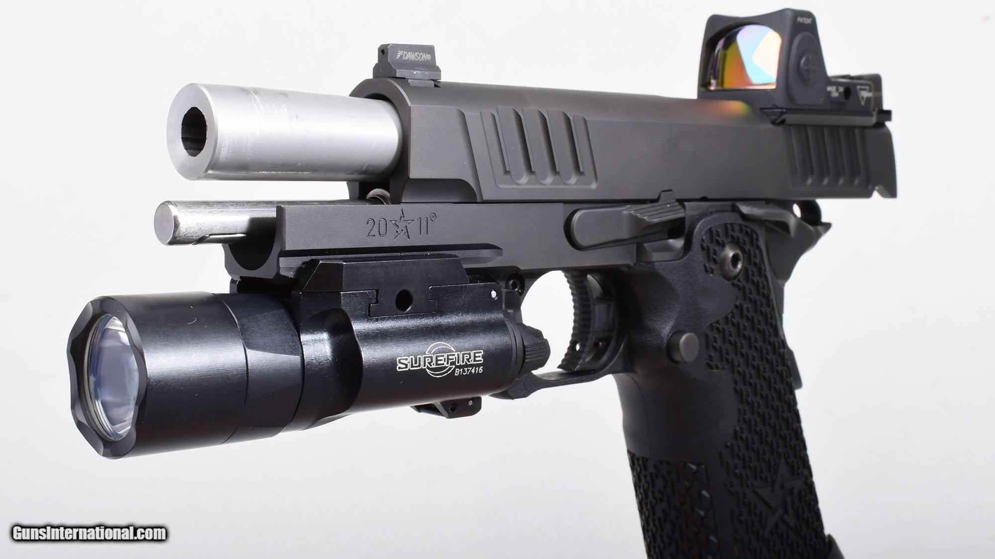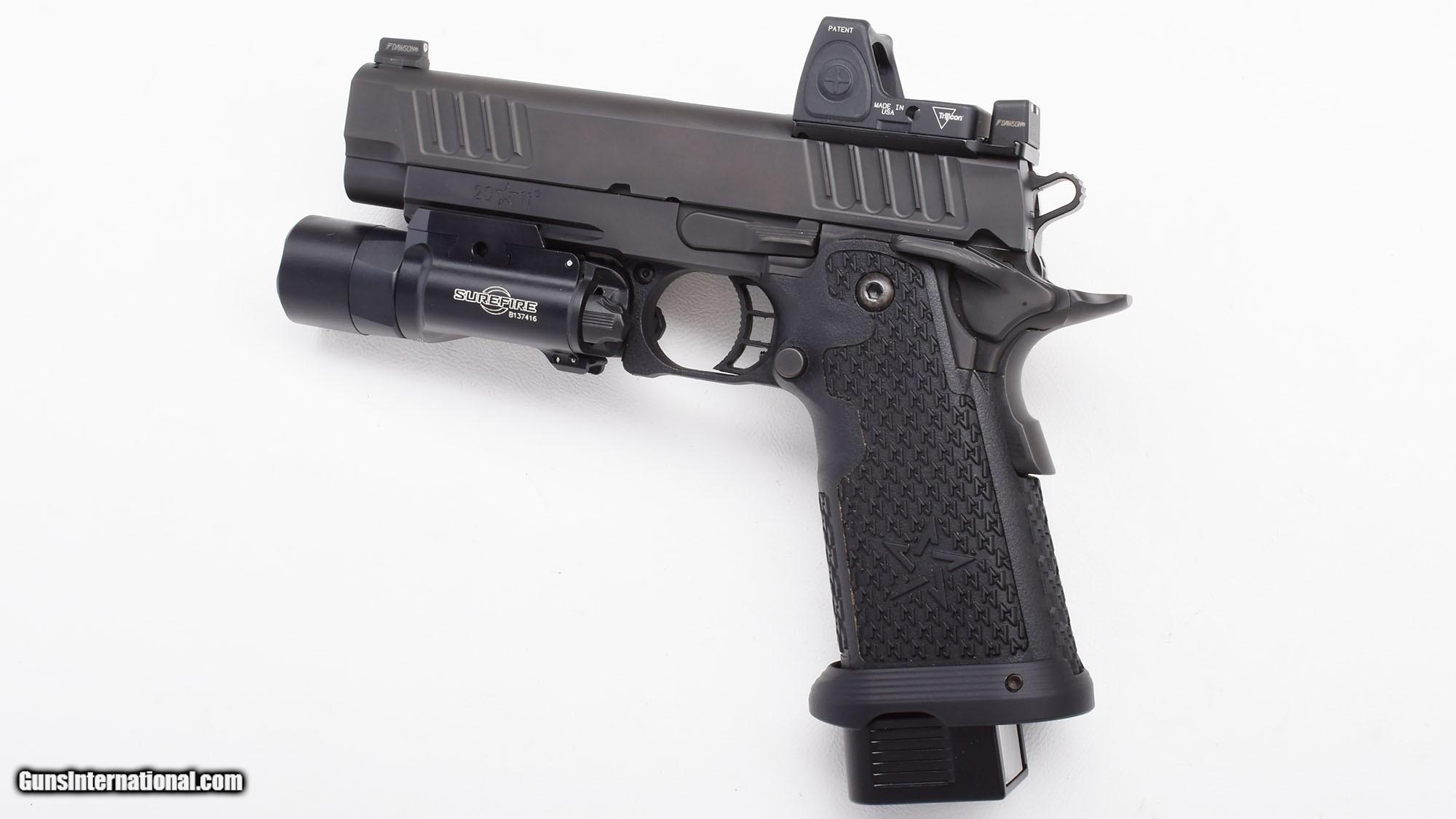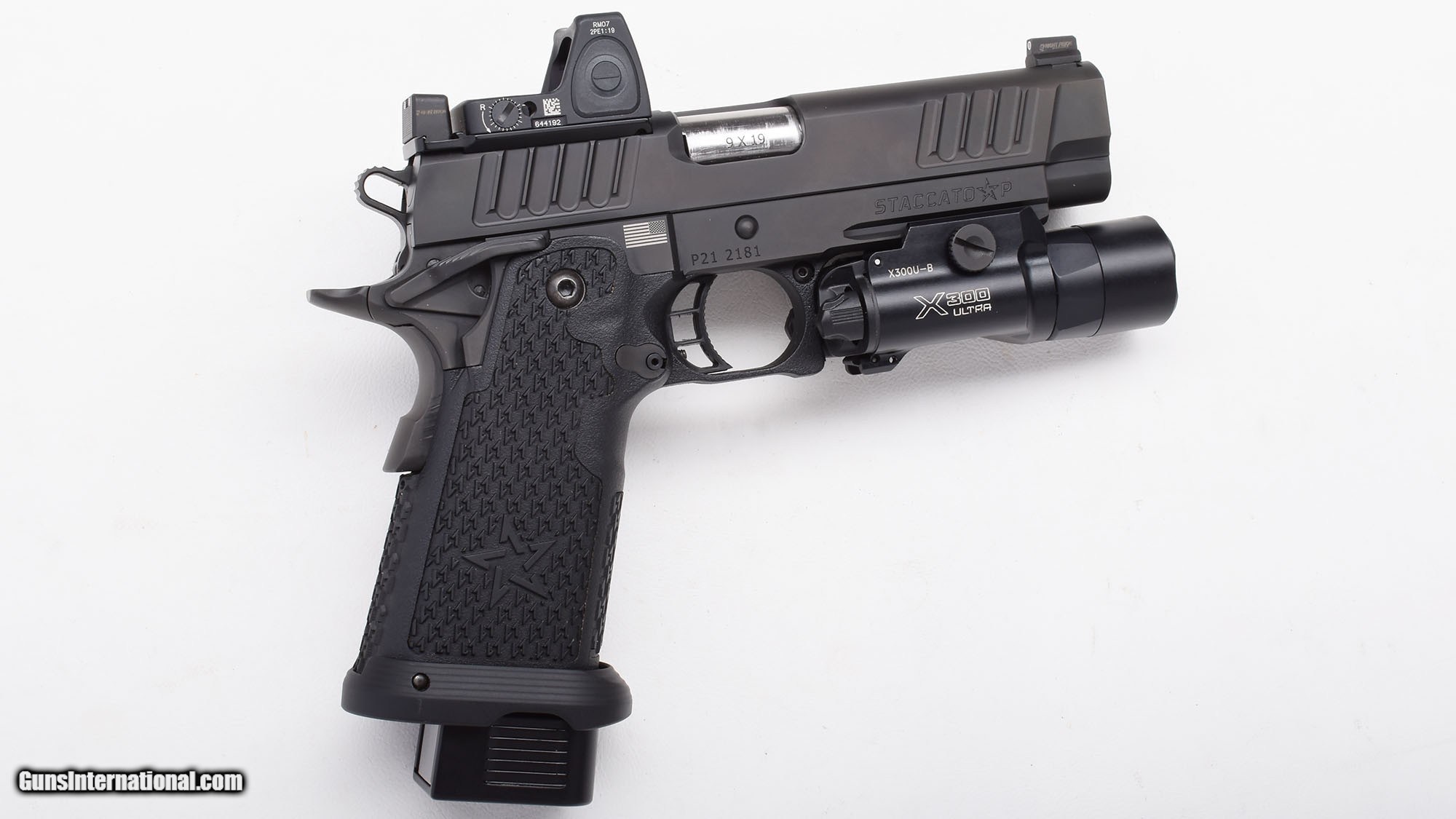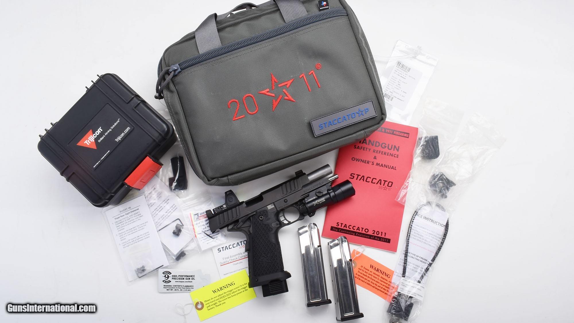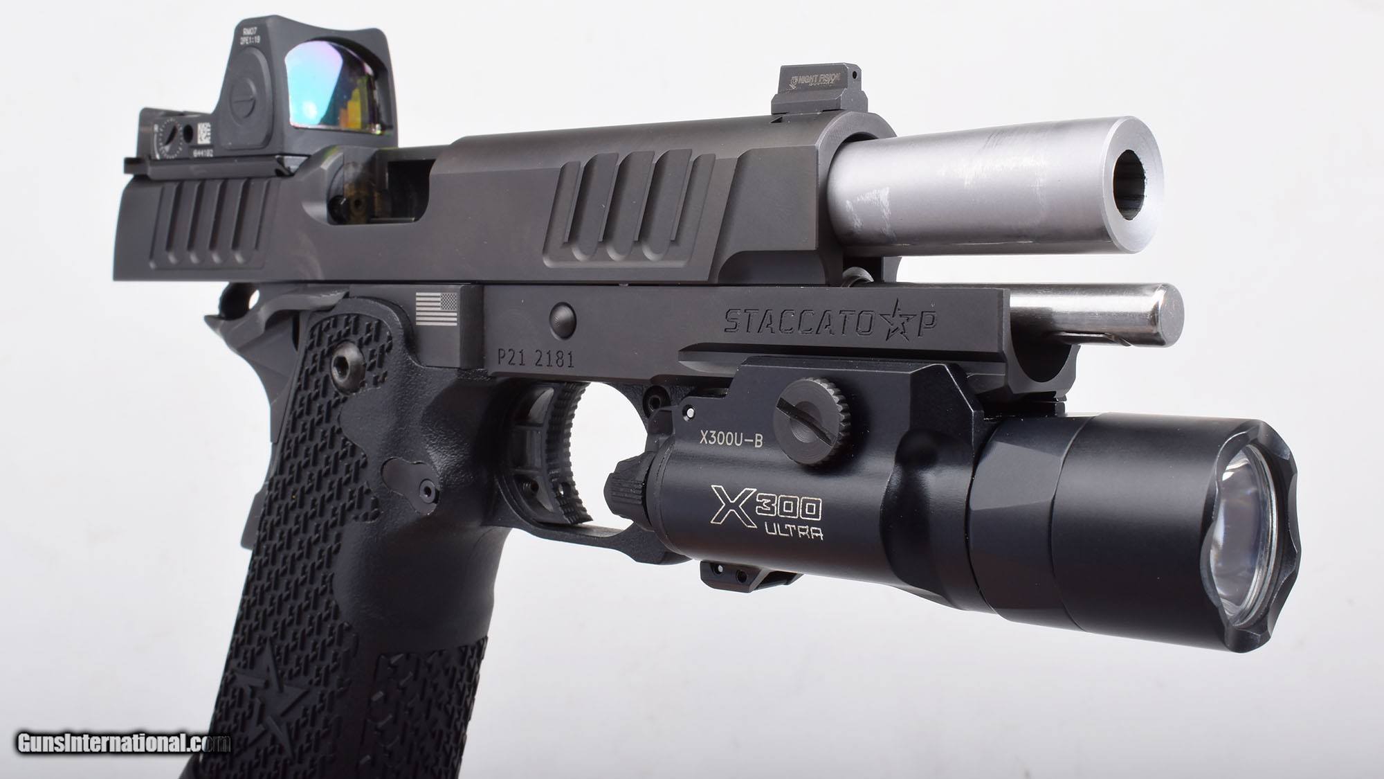 Description: Exceptional High Condition Staccato P in 9mm Luger. Features a Trijicon RM07 Red Dot, and Surefire X300 Ultra Light. The bore is shiny with crisp rifling. Excellent overall, retaining most of the original DLC finish with a few minor handling marks indicative of honest use. Mechanically excellent and crisp. Includes factory soft case, Trijicon optic hard case, factory tags, factory literature, factory sights, additional magazine floor plates, and three 20RD magazines. SOLD Handgun Caliber: 9x19mm Parabellum (9mm Luger, 9x19mm NATO) Manufacturer: Staccato Model: P Caliber Info: 9mm Condition: Extremely High Condition Metal Condition: Excellent Bore Condition: Bright and Sharp Barrel Type: Bull Rifled Action: SAO Finish: DLC Sights: Dawson Night Sights Case: Factory Softcase Item Location: Buda, TX |