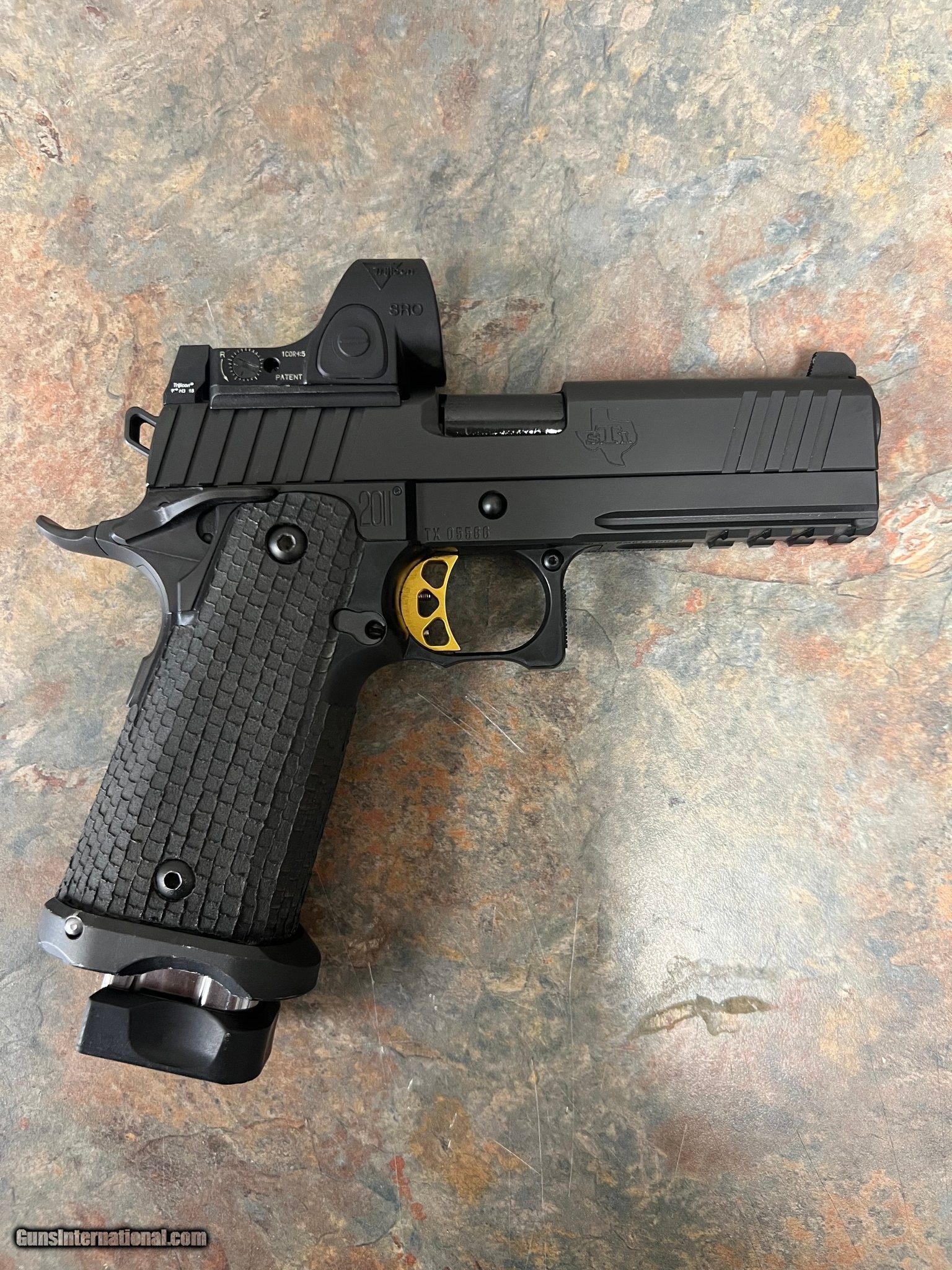 Description: Guns Listing ID: 555076 STI TACTICAL 4.0 H.O.S.T - Trijicon SRO 5 MOA - Atlas gold medium curved, OEM trigger included. - 2 - STI 140mm Mags - 1 - STI 170mm Mag - Pinned & Deleted Backstrap - OEM Optic plates & Cover - OEM STI Owner’s Manual SOLD Manufacturer: STACCATO Model: STI TACTICAL 4.0 HOST Caliber Info: 9MM LUGER (9x19 PARA) Condition: Used - Non-Certified Barrels: 4.0" BARREL Action: SEMI AUTOMATIC Finish: black |
