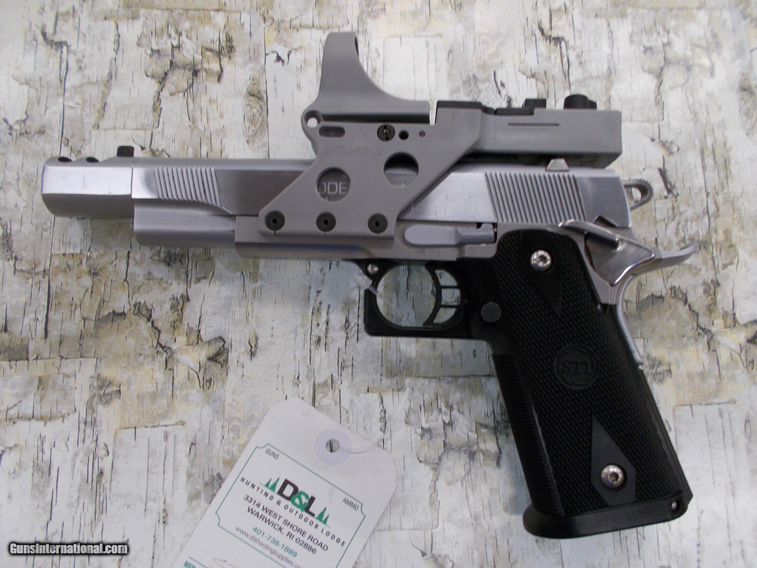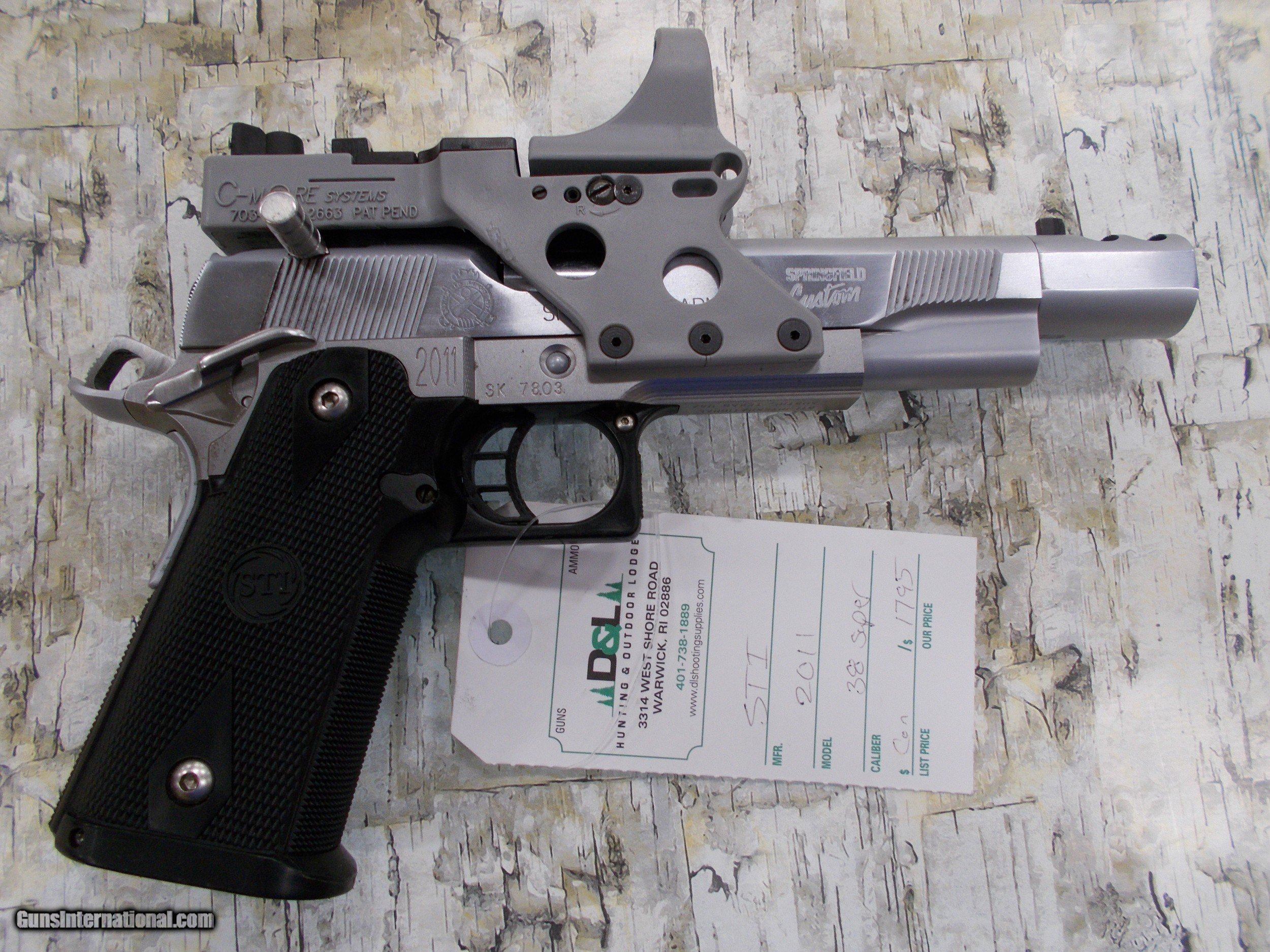 Description: HAVE A STI CUSTOM 1911 2011 STAINLESS IN 38 SUPER 5" BBL WITH 1" COMP HAS CMORE SIGHT MOUNTED COMES WITH 4 MAGS NO BOX 98% OVERALL CONDITION MINT BORE CALL 401 738 1889 TO ORDER SOLD |