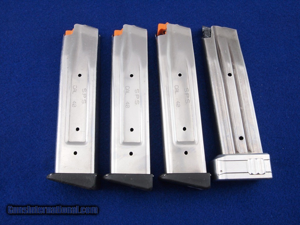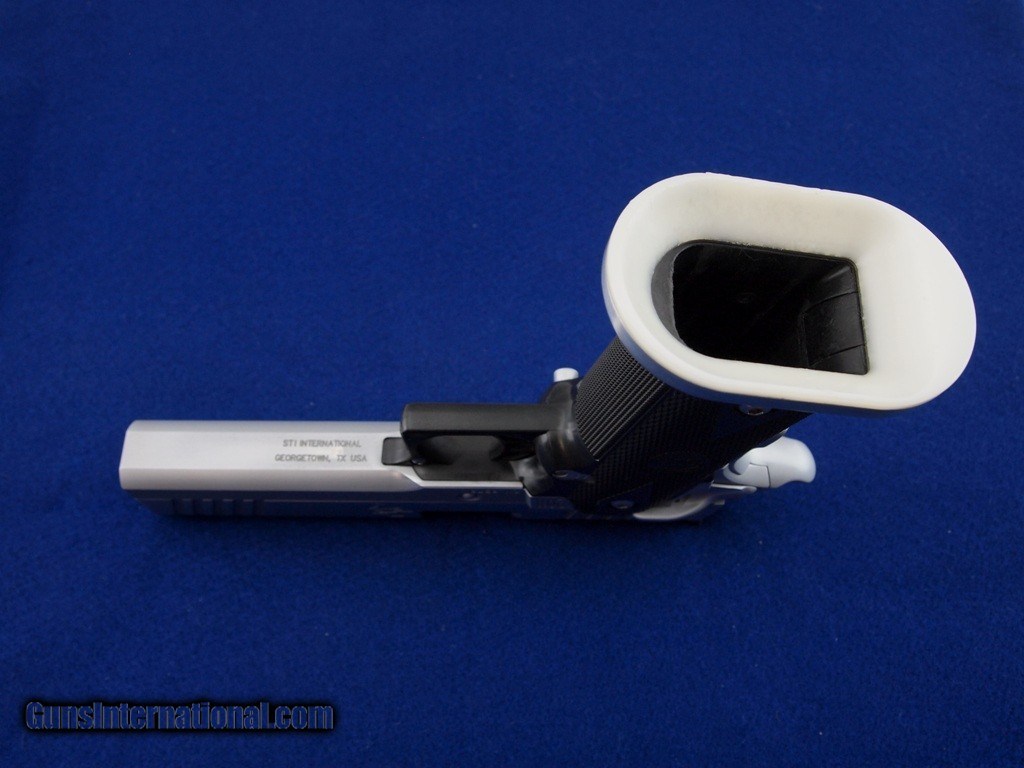 Description: STI 2011 Edge .40 S&W WCase, 5" bbl, bright shiny bore, good rifling, hard chrome finish, STI adjustable rear notch sight, red fiber optic front sight, front - rear cocking serrations, checkered front - back straps, ambidextrous thumb safety, beavertail safety has been disengaged, Dawson Precision ICE magwell, skeletonized trigger - hammer, one Dawson Precision Tuned 3 140 mm magazine, three SPS 140 mm magazines, checkered black STI grips, and black soft case with 4 magazine pouch. We do not know round count on this pistol. Add 3% for Credit Card Shipping $30.00 in the 48 contiguous United States SOLD |