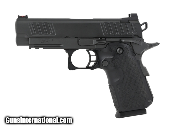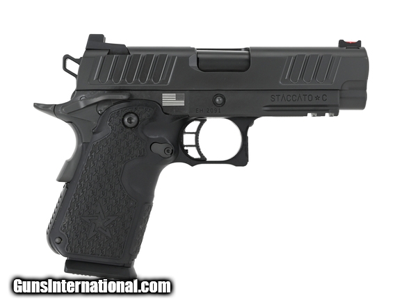 Description: STI 2011 Staccato C 9mm caliber pistol. Single stack with fiber optic sights, ambi safety and double undercut. Comes with four magazines and bag.