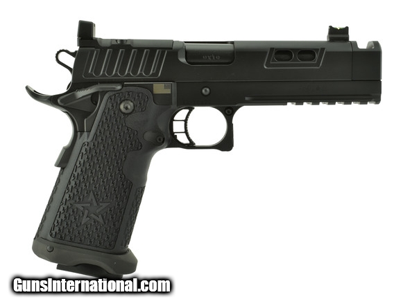 Description: STI DVC P 9mm caliber pistol. Open class gun with green fiber optic front sight, RMR cut and slide window with island comp and ambi safety . Formerly known as the Omni. New