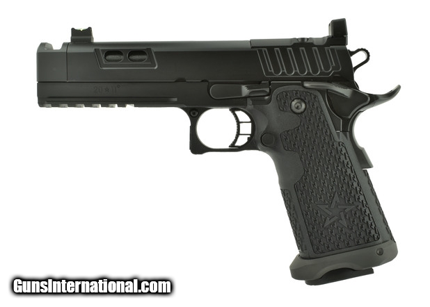 STI DVC P 9mm caliber pistol. Open class gun with green fiber optic front sight, RMR cut and slide window with island comp and ambi safety . Formerly known as the Omni. New