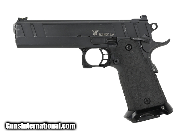 STI Hawk 5.0 9mm caliber pistol. 5” 2011 Pistol with 5” barrel, polymer grips, fiber optic sights and front serrations. Comes with box and magazine.