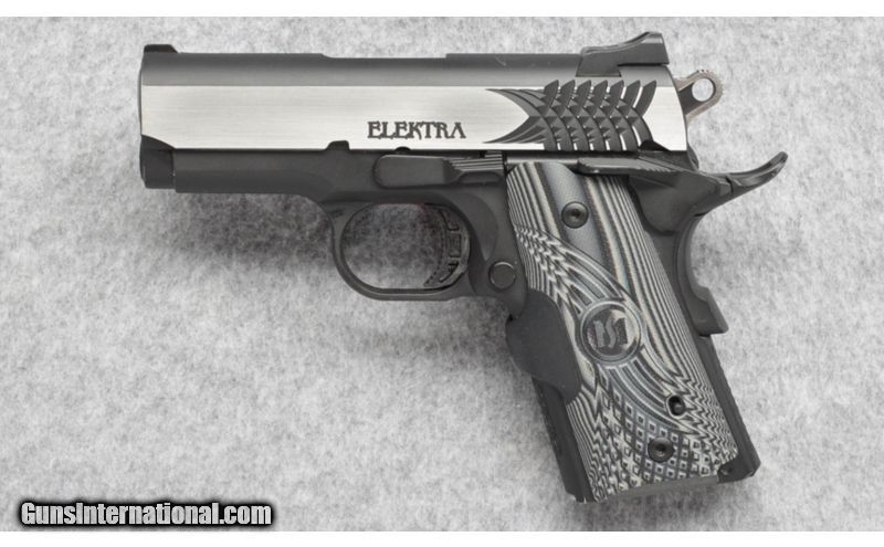 Description: STI International Elektra in 45 ACP. Officer size 1911 with alloy frame and stainless slide and barrel. protected with STI's KG coating. Has a couple very minimal handling rubs and scratches. Laser Grips functions fine. SOLD Caliber Info: 45 ACP Metal Condition: Few minimal handling marks Bore Condition: Excellent Barrels: 3 1/4" STI Bull Barrel Triggers: STI Short Curved Trigger Stock: Crimson Trace Master Series G10 Laser Grips Weight: 26 Ozs Sights: Two-Dot Tritium Night Sights Item Location: Buda, TX |