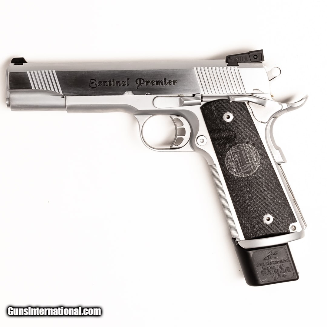 Description: Guns Listing ID: 562945 The STI International Sentinel Premier is a full-size stainless-steel 1911. This is an incredibly smooth shooting pistol that is perfect for daily carry, range time, and home-defense. 2-10 round magazines, 4-8 round magazines, a Galco right hand leather holster, Minotaur IWB holster, additional VZ thin grips, and an Uplula loader are included. SOLD Manufacturer: STI INTERNATIONAL Model: SENTINEL PREMIER Caliber Info: .45 ACP Condition: Used - Certified Barrels: 4.75 BARREL Finish: STAINLESS |