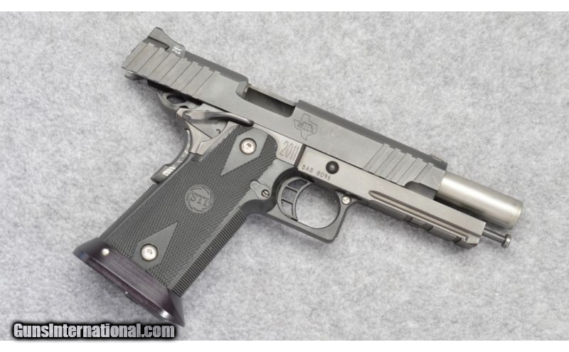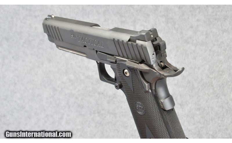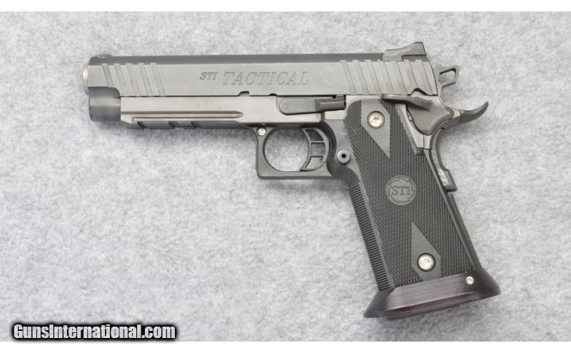 Description: StI Tactical in 45, Rock solid slide to frame fit,STI modular steel frame with integral rail. 12 round capacity mag. SOLD Caliber Info: 45 ACP Metal Condition: Scattered light marks and scratches Bore Condition: Bright and Sharp Barrels: 5.01 Inch Ball Barrel Triggers: STI Long Curved Trigger Stock: Black Glass Filled Polymer Weight: 34 Ozs Sights: Ledge Rear Sight, Ramped Front, Trijicon Inserts Item Location: Buda, TX |
