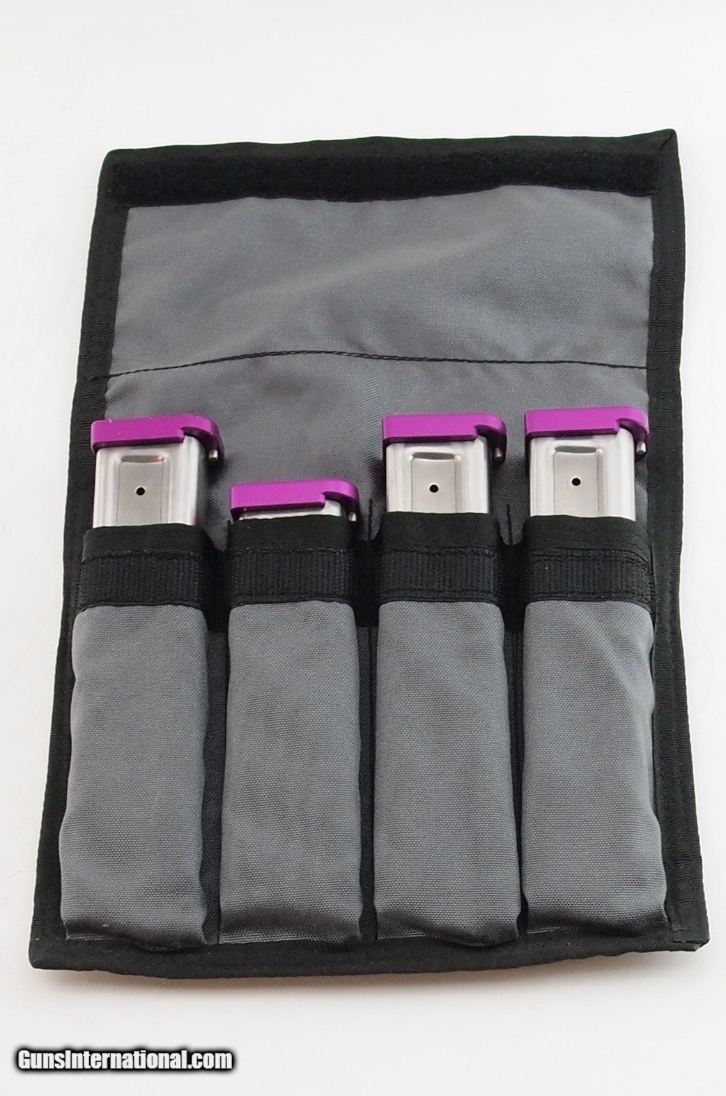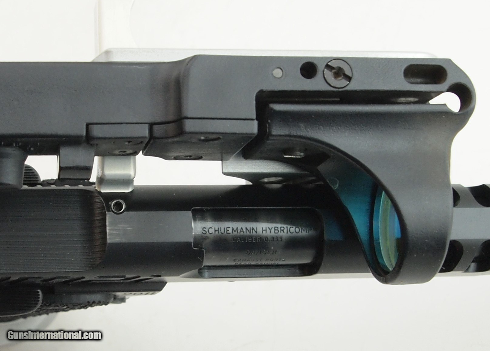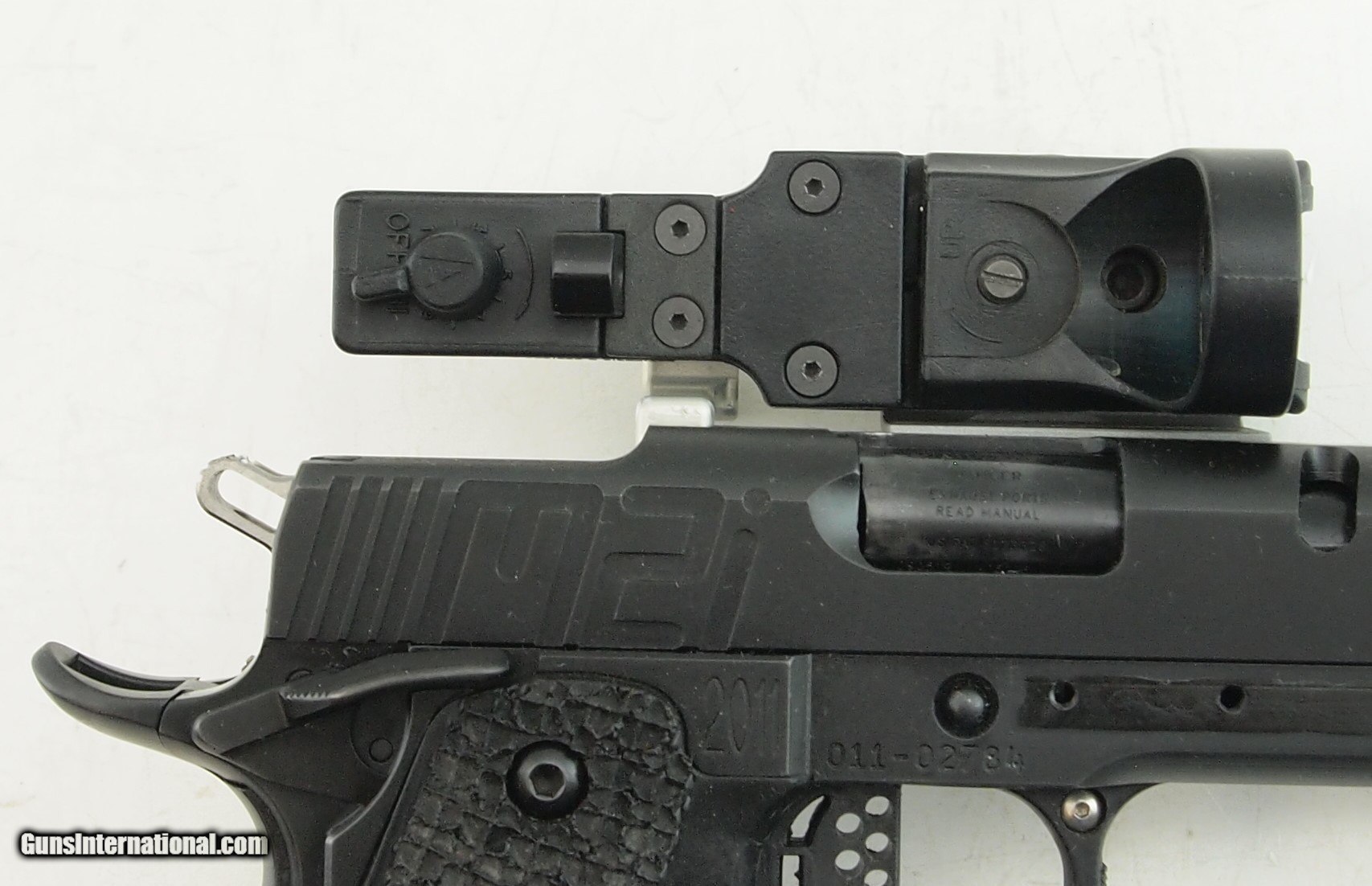 Description: STI - McLearn 2011 M2i Custom .38 Super, 5" Schuemann Hybricomp barrel with 3 Poppel holes, bright shiny bore, good rifling, M2i compensator, STI frame, M2i slide, 90 degree C-More red dot optic, ambidextrous thumb safety, gas pedal thumb rest, beavertail safety has been disengaged, M2i bevelled magwell, sleletonized trigger - hammer, one STI 140 mm magazine with Taran Tactical base plate, three STI 170 mm magazines with Taran Tactical base plates, aggressively textured grips, and 4 magazine pouch. We do not know shot count, but it appears to be low. Add 3% for Credit Card Shipping $35.00 SOLD |