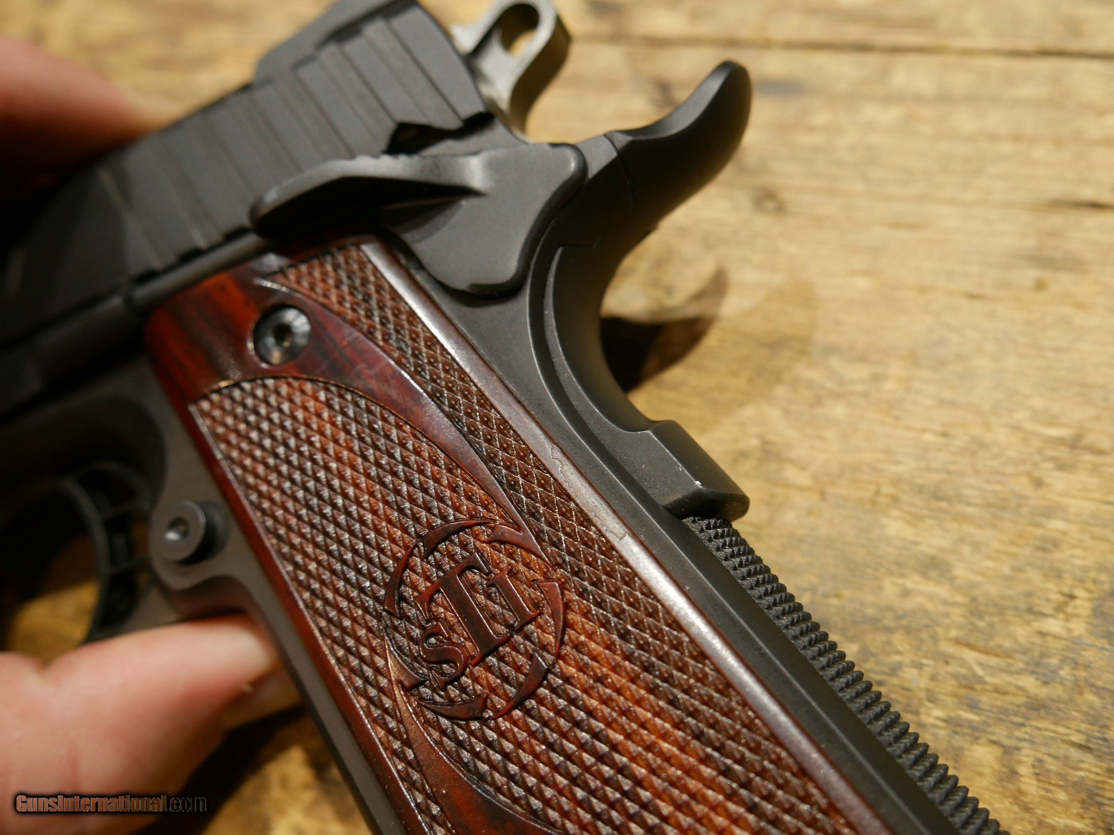 Description: STI International Ranger II semi-auto pistol in .40 Smith & Wesson. 1911 pattern single-action only with thumb and beavertail safety. 4.15" bull barrel. .5" shortened grip blued steel frame. Black matte stainless steel slide. Scalloped grip texture to the front strap and stippled back. Low mount STI/Heinie sights. 8-rd mag capacity. This is an excellent choice for a carry-sized 1911 in the powerful 40 S&W! This comes to us used but in excellent condition. A few light handling marks are show in the pics. A few very light holster scuffs to the slide barely show up in pics. Small mark on the front strap. If this was fired it wasn't much and the barrel is very clean and shiny. This thing is hard to find and very much ready to go! Comes with: Original hard case, manuals, lock, 3 8-rd magazines! Please call or email with any questions. Must ship to FFL. ***$40 SHIPPING AND INSURANCE*** ***NO CREDIT CARD FEES*** ***ALL WARRANTIES ARE HANDLED BY THE MANUFACTURER*** ***NO WARRANTIES THROUGH SILVER CREEK OUTFITTERS IMPLIED OR EXPRESSED*** ***MUST CALL TO COMPLETE TRANSACTION*** ***PLEASE BE IN CONTACT WITH A RECEIVING FFL AND BE PREPARED TO PROVIDE THEIR EMAIL ADDRESS OR AT LEAST THEIR PHONE WHEN MAKING PAYMENT*** SOLD Handgun Caliber: .40 Smith & Wesson (.40 Auto, 10 x 21 mm) Manufacturer: STI INTERNATIONAL Model: RANGER II Condition: USED, EXCELLENT |