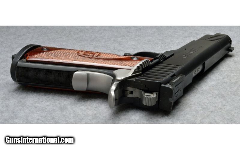 Description: SOLD Caliber Info: .45 Auto Metal Condition: Excellent, Few Light Wear and Handling Marks Wood Condition: Grips Are In Excellent Condition Bore Condition: Bright Barrels: 5 Triggers: Single Action, Extended Grip Safety & Ambi Safety Levers Stock: STI Wood Grips Weight: 2 Lbs 8 ozs Sights: Adjustable Iron Sights Extras: With one mag and hard case Item Location: Fort Mill, SC |