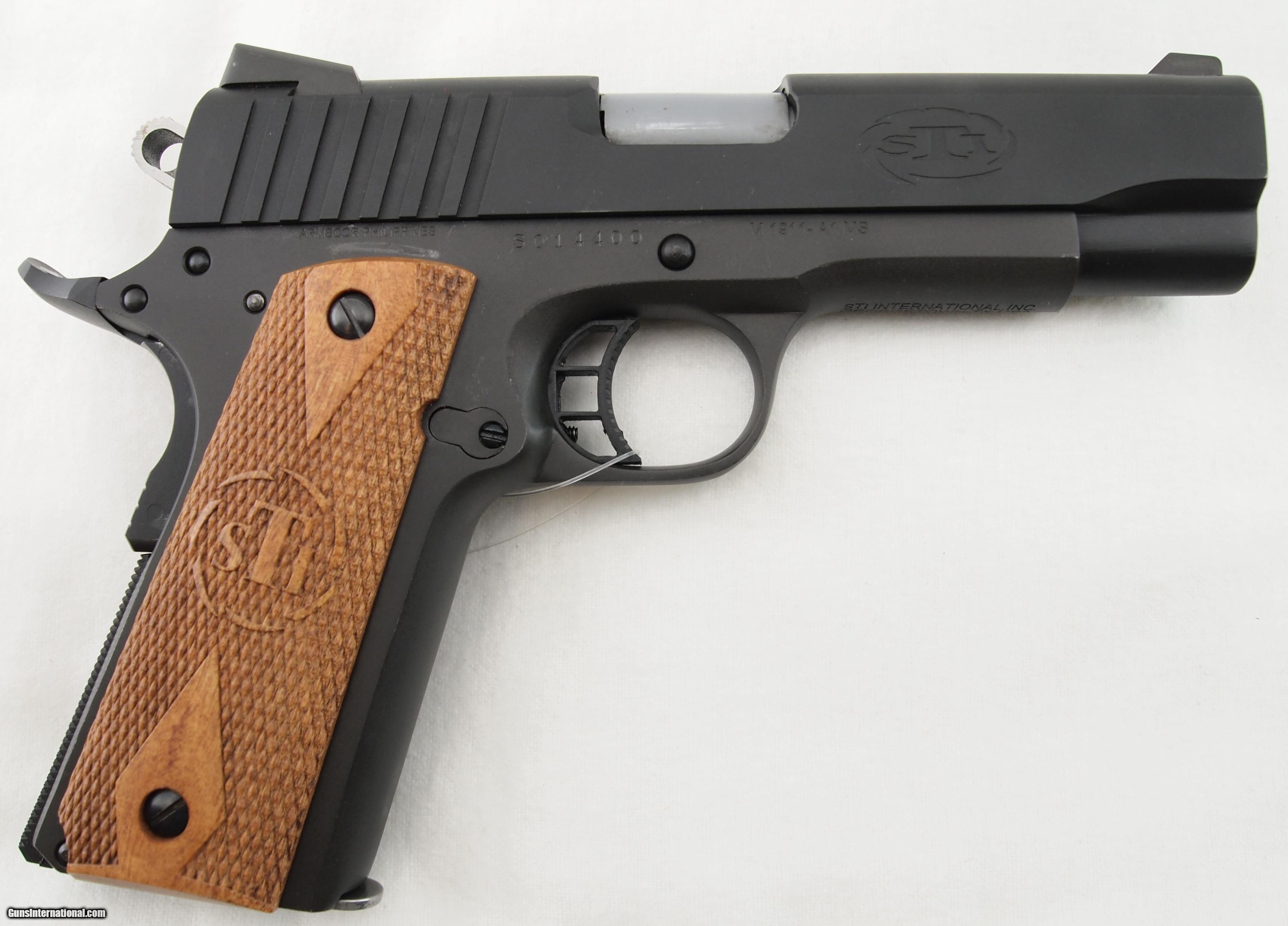 Description: STI, Spartan IV, 9mm, w/box, ANIB, 4" SS bbl, Parkerized finish, bright shiny bore, good rifling, skeletonized trigger and hammer, checkered mainspring housing, fixed sights, and diamond checkered STI wood grips. Add 3% for Credit Card Shipping $25.00 SOLD |