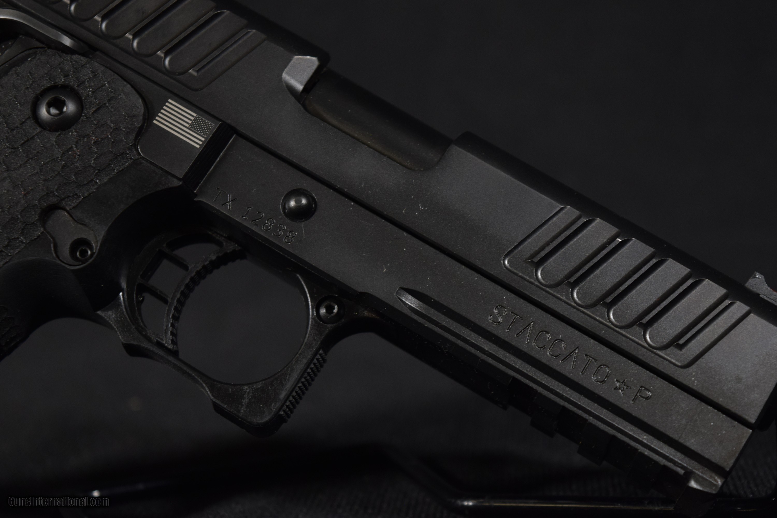 Description: Built for professionals and embraced by home defenders, the Staccato P is approved for duty by over 1,500 law enforcement agencies across the country (e.g. Houston Police Department, Las Vegas Metro Police Department, Texas Rangers) and carried by thousands of officers across the country. The Staccato P is chosen for its proven durability, reliability, accuracy, and performance. Protect yourself and your family with the gun trusted by America’s heroes. This item does not come with a case. Overall condition is great with some wear form use to the item