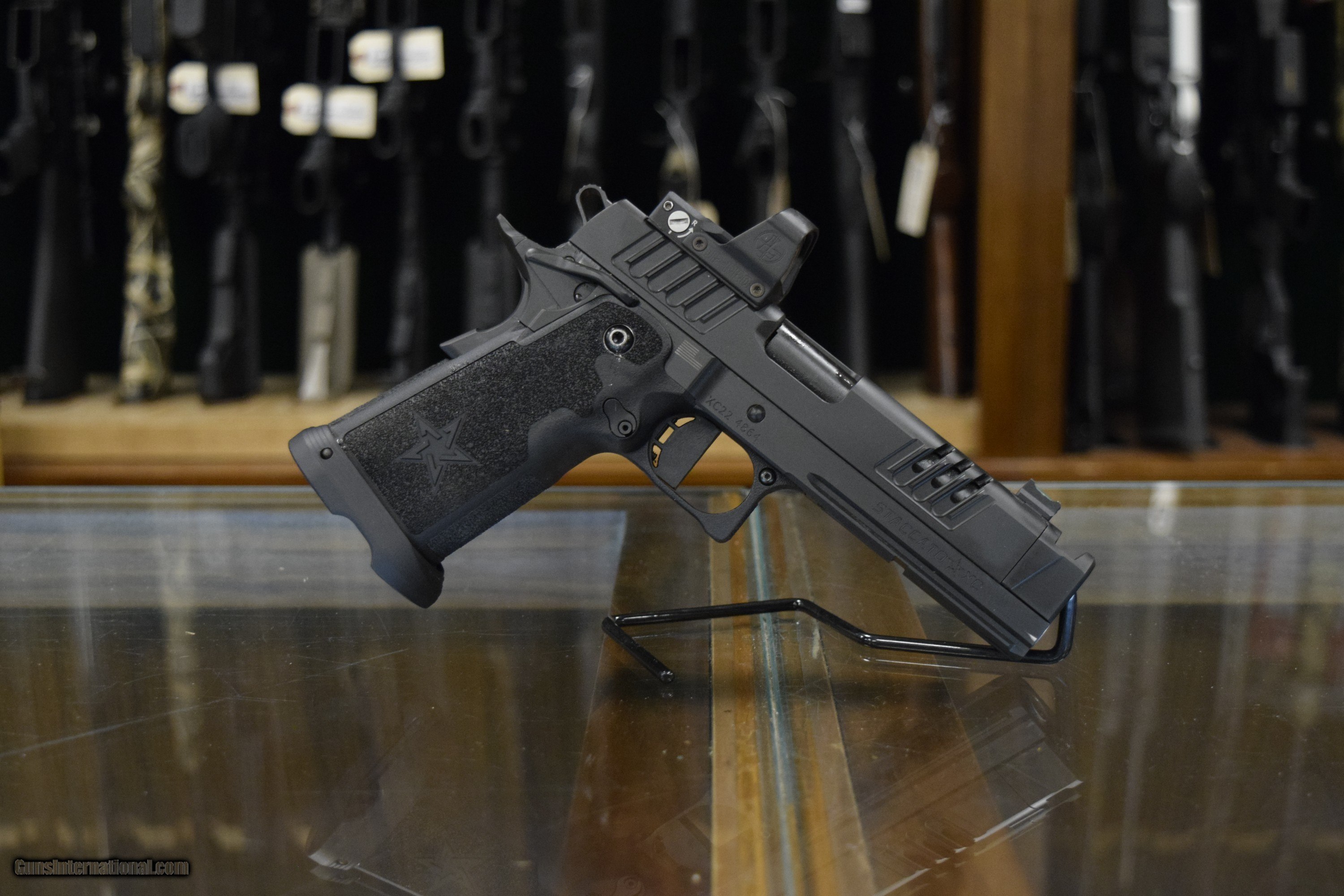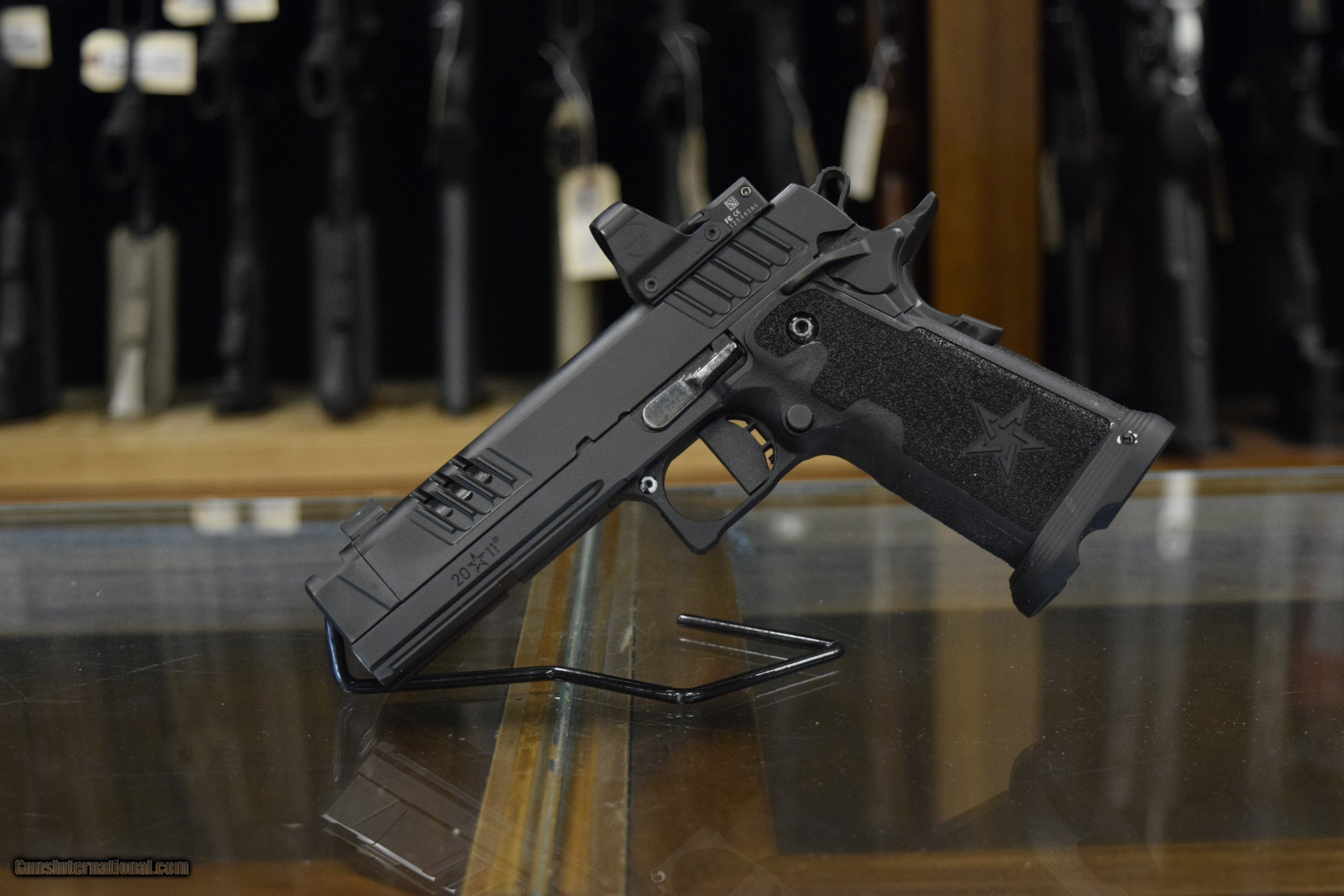 Description: From elite shooters to everyday range shooters, the Staccato XC delivers incredibly flat and fast shooting. Built with an integrated compensated barrel and a balanced trigger, the XC gives shooters a leg-up on their peers. The increased confidence shooters gain with the XC also makes it a sound choice for home defense. Cover plates and co-witness height sights for the Leupold Delta Point Pro, Trijicon RMR are included in the Staccato® Tactical Optic system. Optic-specific Staccato® mounting plates are included. This item comes wth 3 magazines. Overall condition is great with some wear to the item from use. DAMAGED FROM FALL OUT OF DELIVERY TRUCK. FRONT COMPENSATOR HEVILY SCRATCHED.