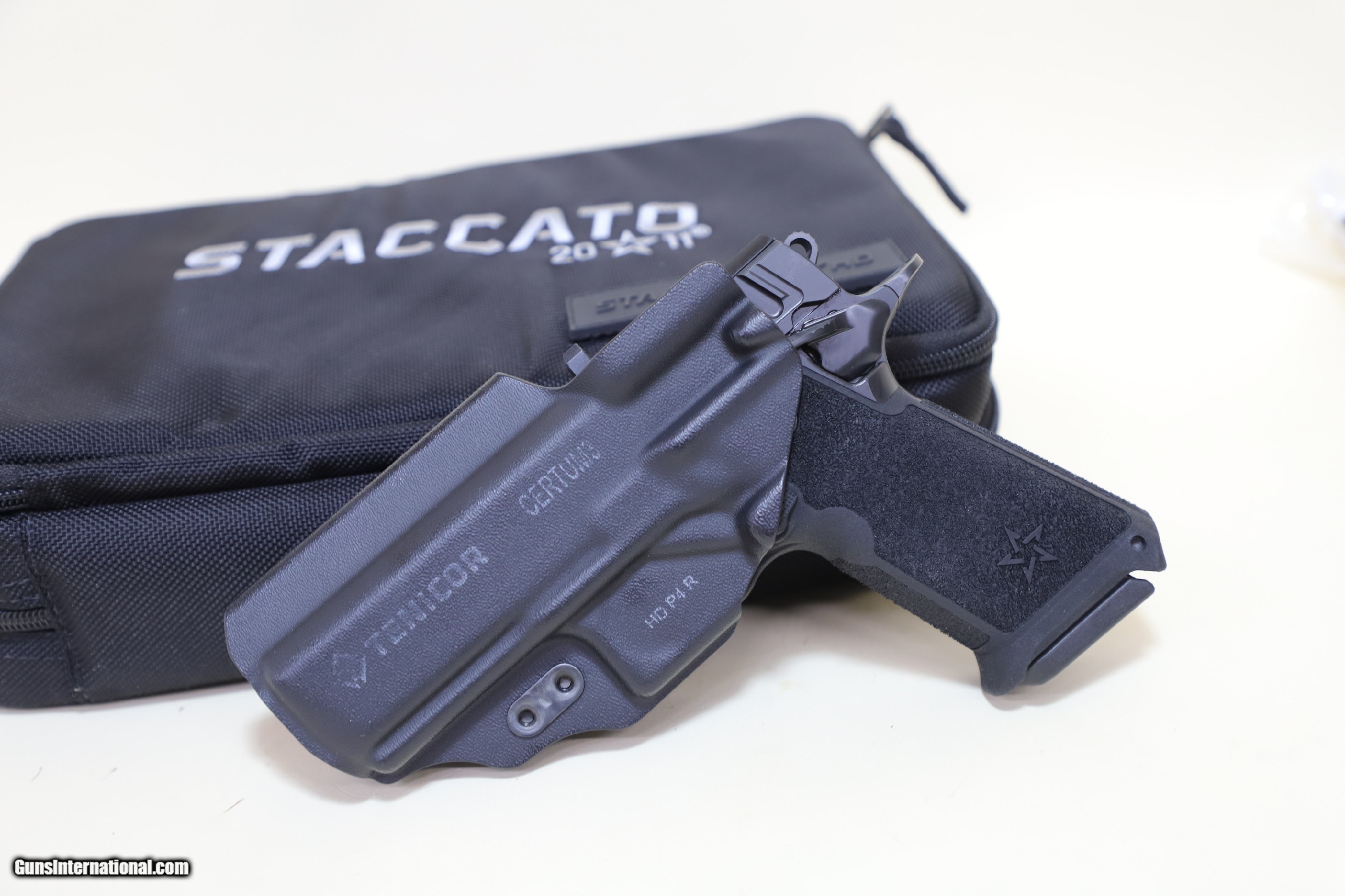 Staccato P4 2011 – 9mm, DLC Finish, Bull Barrel, Trijicon Night Sights – Package Kit w/ 3 Mags