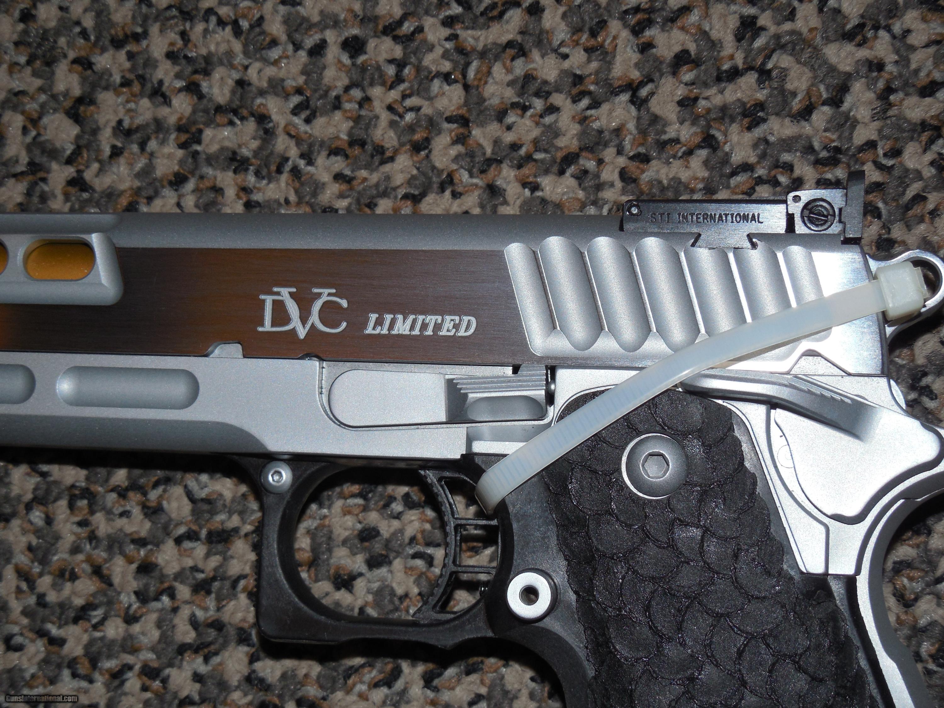 Description: Here's a new and VERY hard-to-get STI "DVC LIMITED" 9 MM PISTOL. It's shipped with two magazines and is being offered for ONLY $2999.95 plus $25 for shipping, handling, and insurance for CASH/CERTIFIED FUNDS/MO's. Use a credit card and add $90 to the total. SOLD |