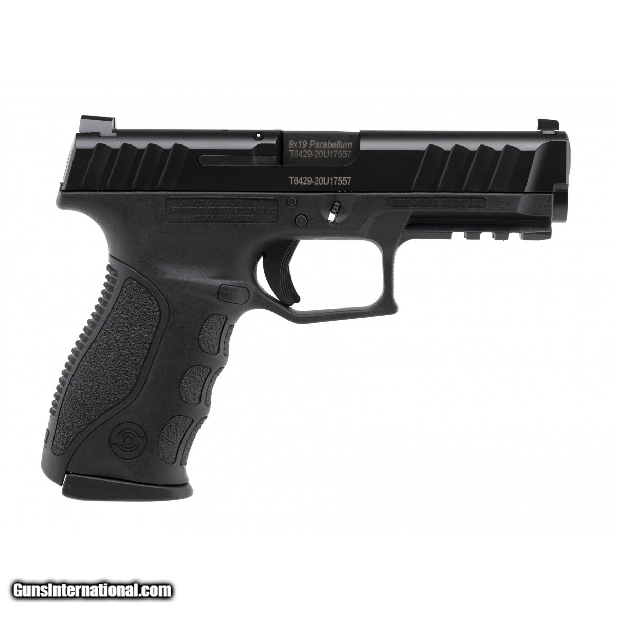Full size duty pistol with steel sights and front serrations. Very good condition.