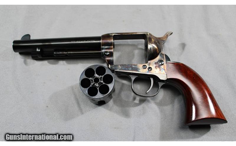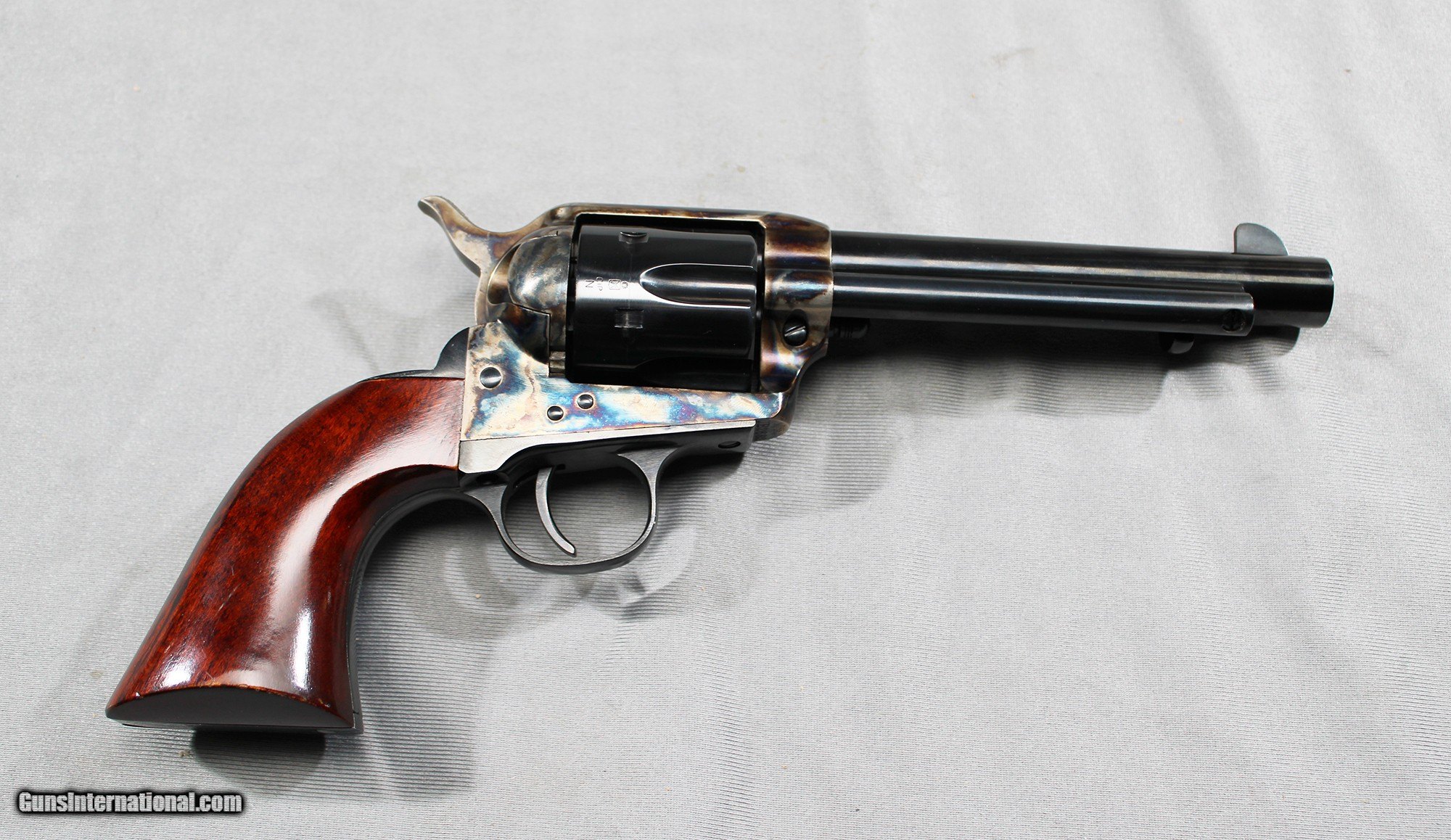 Description: Stoeger model 1873 chambered in .45 colt featuring case hardened finish and wooden grips. Overall condition is excellent. .45 Colt SOLD Chambers: .45 colt Metal Condition: Good Wood Condition: Good Bore Condition: Good Barrels: 5.5'' Triggers: 5 lbs Stock Dimensions: N/A Fore End: N/A Butt Pad: N/A Weight: 2 lbs Sights: Front blade Chokes: N/A Item Location: East Peoria, IL |