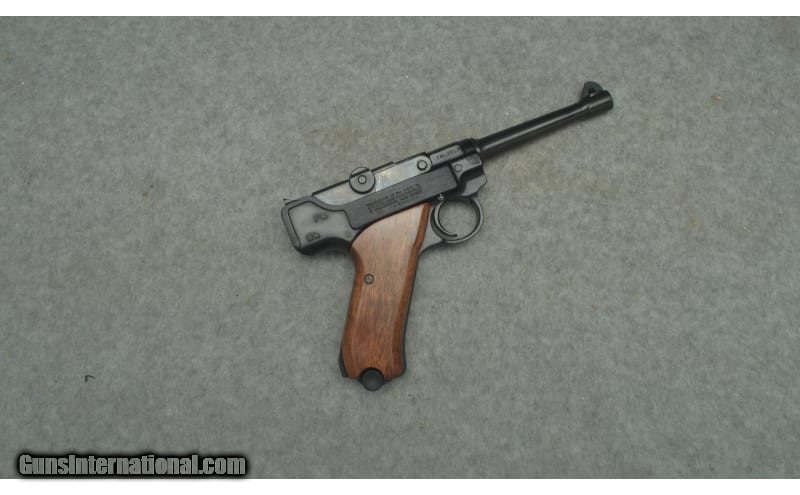 Description: Stoeger Luger, chambered in .22 LR. Overall condition is very good. Nice blue and wood. .22 Long Rifle SOLD Chambers: 10 Metal Condition: V good Wood Condition: V good Bore Condition: V good Barrels: 4.5 Weight: 3 LB Item Location: Sun Prairie, WI |