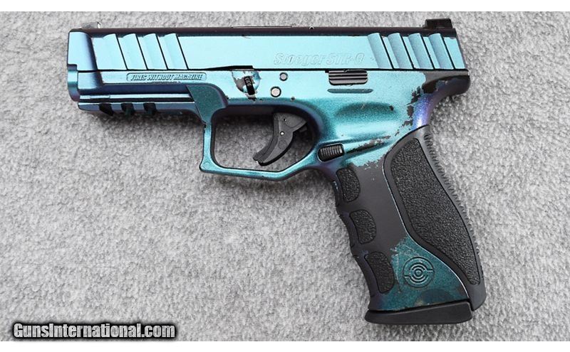 Description: This compact Stoeger STR-9 has had a metallic blue Cerakote finish added to the black polymer frame which has worn off in high contact places. Textured black polymer grips and recessed hammer. Function appears good. Complete with box! 9mm Parabellum SOLD Metal Condition: Good Bore Condition: Very Good Barrels: 3.8 Triggers: Factory Butt Pad: Stoeger Textured Grips Weight: 25 Oz. Sights: Three Dot White Tritium Night Sights Item Location: Wheeling |